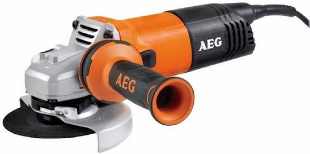 Elektrická úhlová bruska AEG WS 13-125 SXEK, dodávaná s boční rukojetí AVS, beznástrojovým bezpečnostním krytem, přírubou, maticí příruby a klíčem, kufr.