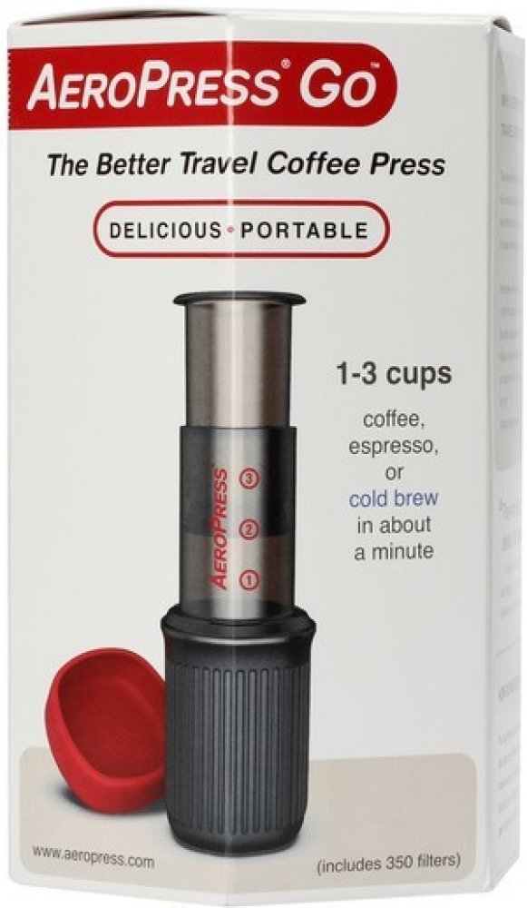 - malé rozměry: samotný AeroPress Go je velký 12cm x 9cm x 9cm, celý AeroPress Go schovaný i s příslušenstvím v hrníčku s víčkem má rozměry 14cm x 10cm x 10 cm