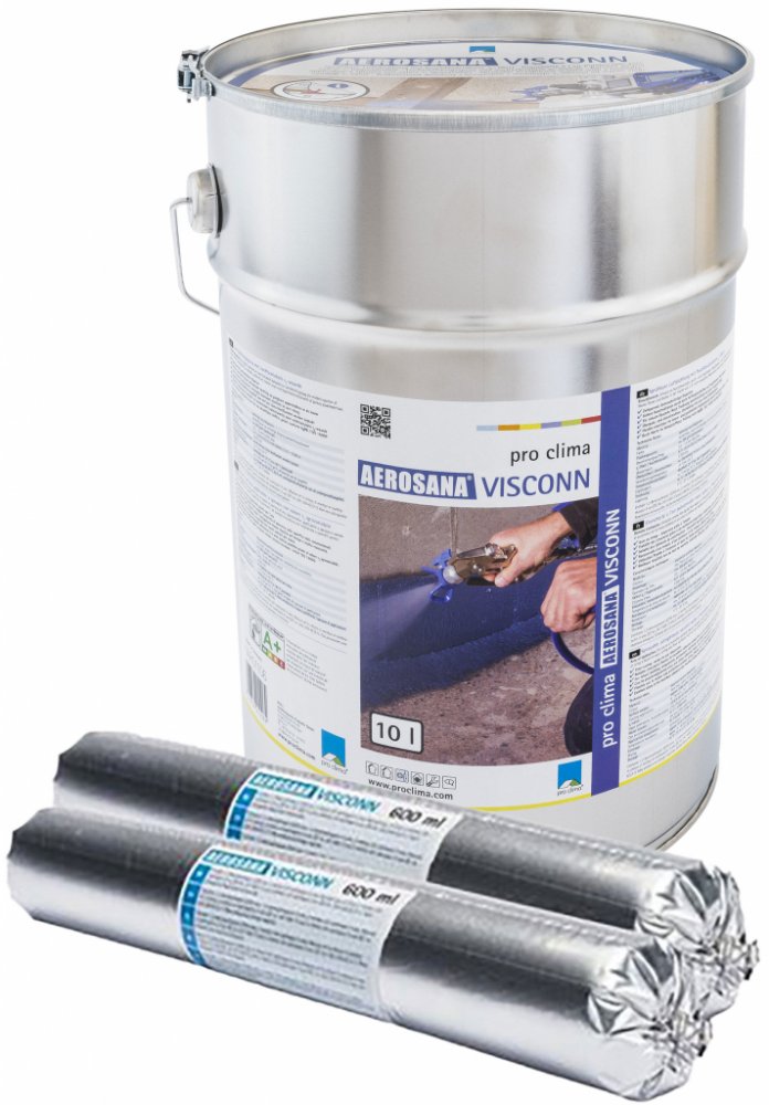 S nástřikovou a nátěrovou neprodyšně izolující vrstvou s vlhkostně proměnlivým difúzním odporem AEROSANNA VISCONN se pracuje extrémně rychle: jak na plochách, jako je například neomítnuté zdivo nebo porézní deskový materiál, tak i při zhotovení napojení stavebních dílů v dřevostavbách i zděných stavbách.