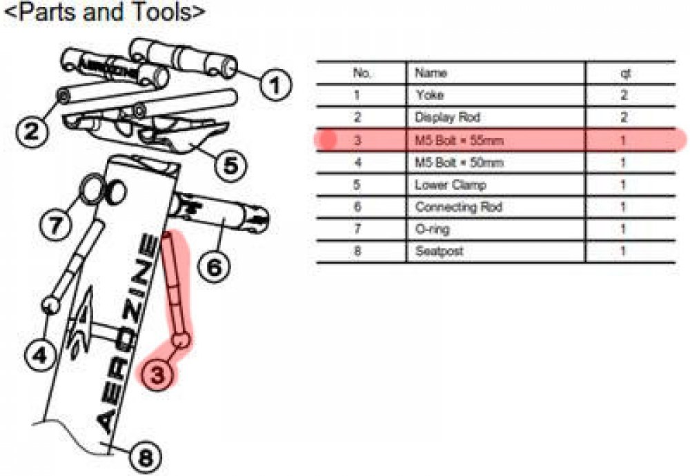 Náhradní díl (šroub k zámku sedlovky) k sedlovce Aerozine XP1.0 - M5x55L