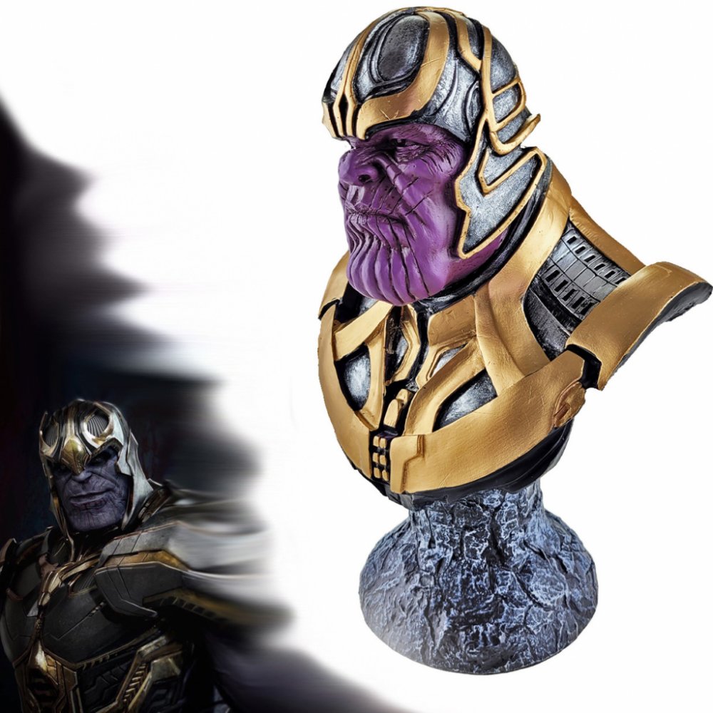 Detailně zpracovaná busta legendárního Thanose Vás na první pohled zaujme svými propracovanými detaily. Busta je vysoká cca 34 cm. Celá je vyrobena z pevné pryskyřice a ručně malovaná. Váha celého produktu je přesně 1620 g.