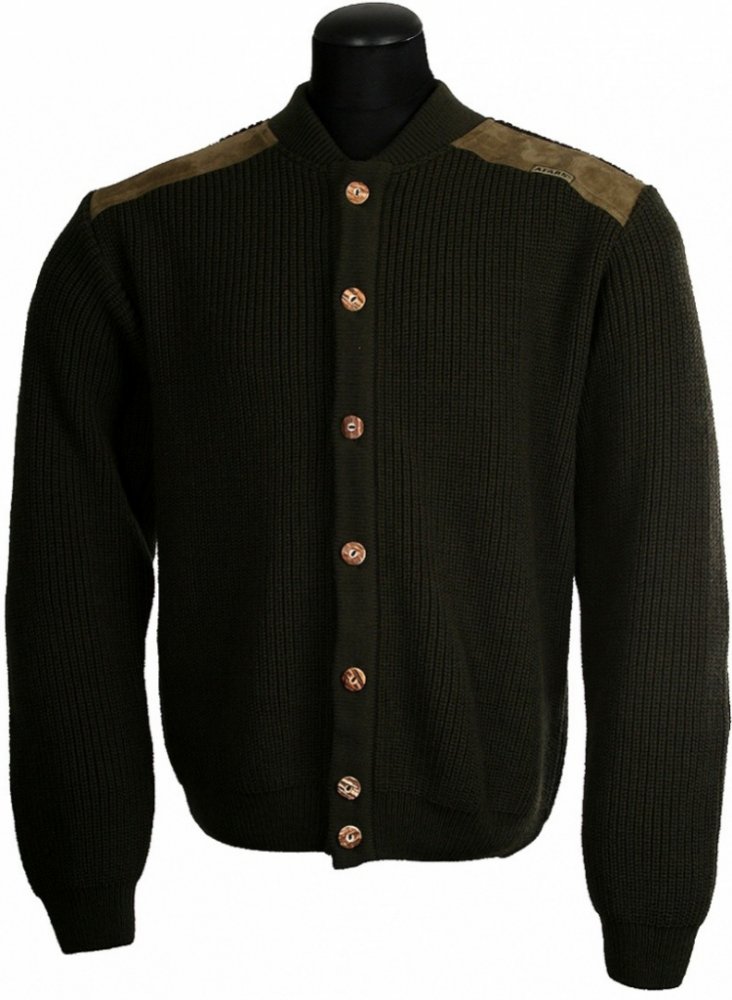 Představujeme Afars Radim, silný celopropínací lovecký svetr, který kombinuje tradiční design s praktickými detaily. Tento myslivecký svetr se zapínáním na knoflíky z pravého paroží dodává vašemu mysliveckému oblečení punc elegance a originality. Pro zvýšenou odolnost a stylový vzhled jsou na ramenou a loktech našity aplikace z kvalitní imitace kůže v zelené barvě.