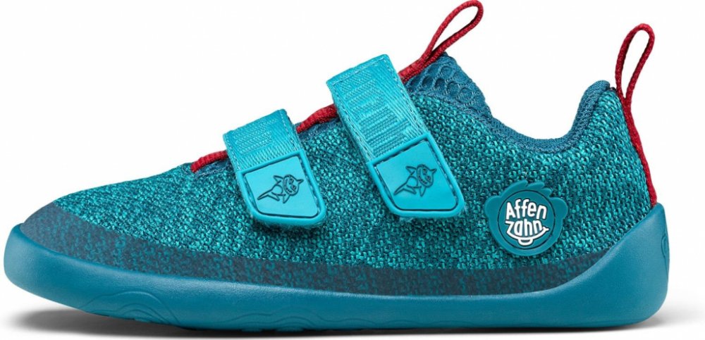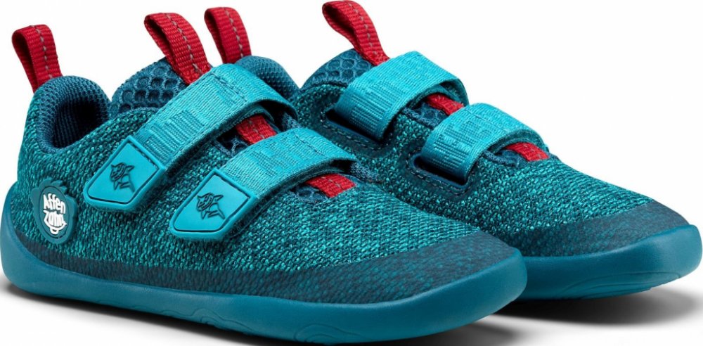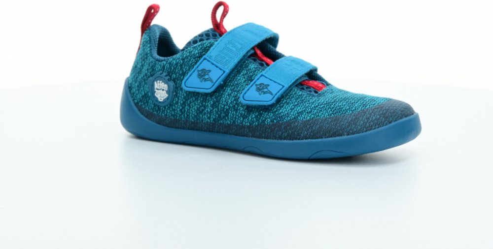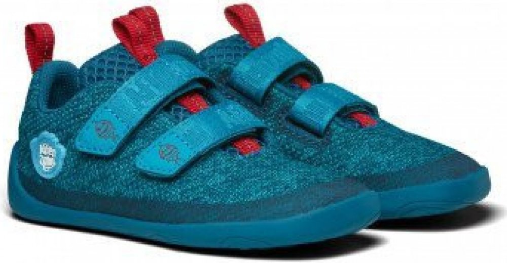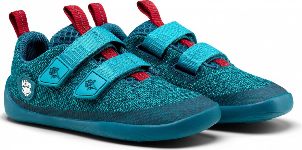 Dětské veganské úpletové barefoot boty ergonomického tvaru. Díky tenké, ohebné a neklouzavé podrážce umožňují přirozenou dynamiku chůze a postupné odvalování chodidla.