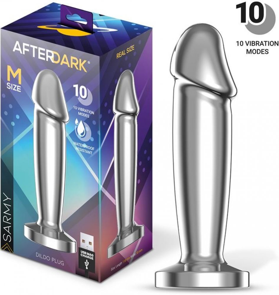 AfterDark Sarmy Metal Vibrating Dildo Plug Size M