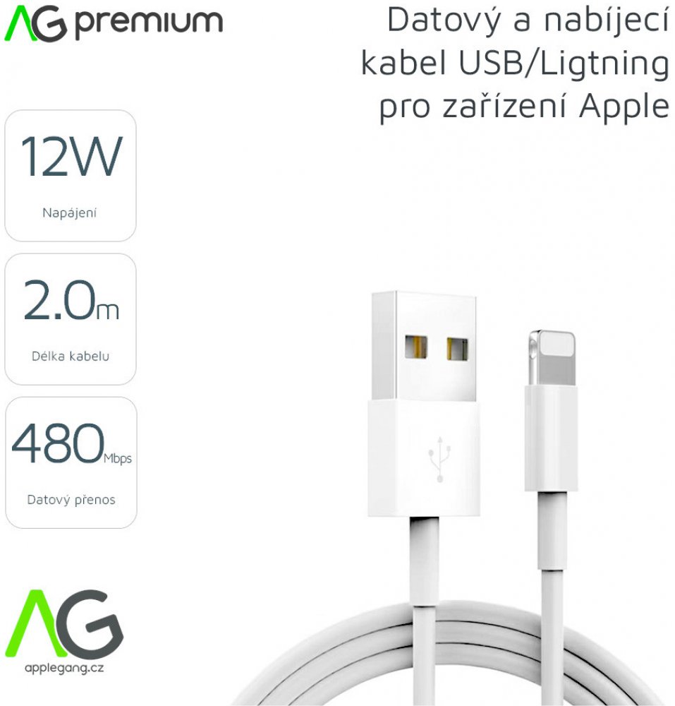 AG Premium C602 USB/Lightning pro Apple zařízení, 2m, bílý