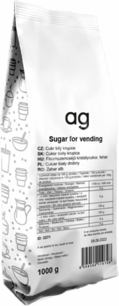 AG Sugar for vending - cukr pro nápojové automaty. Jedná se o řepný cukr bez přísady aromatických přípravků a barviv. Kvalitní triplexová fólie zajišťuje ochranu před vlhkem, čímž je minimalizována možnost tvrdnutí, až do chvíle vsypání cukru do automatu. AG Sugar for vending je velmi dobře rozpustný, vhodný ke slazení všech nápojů (kávy, čaje a ostatních). Minimální odchylky ve velikostech jednot...