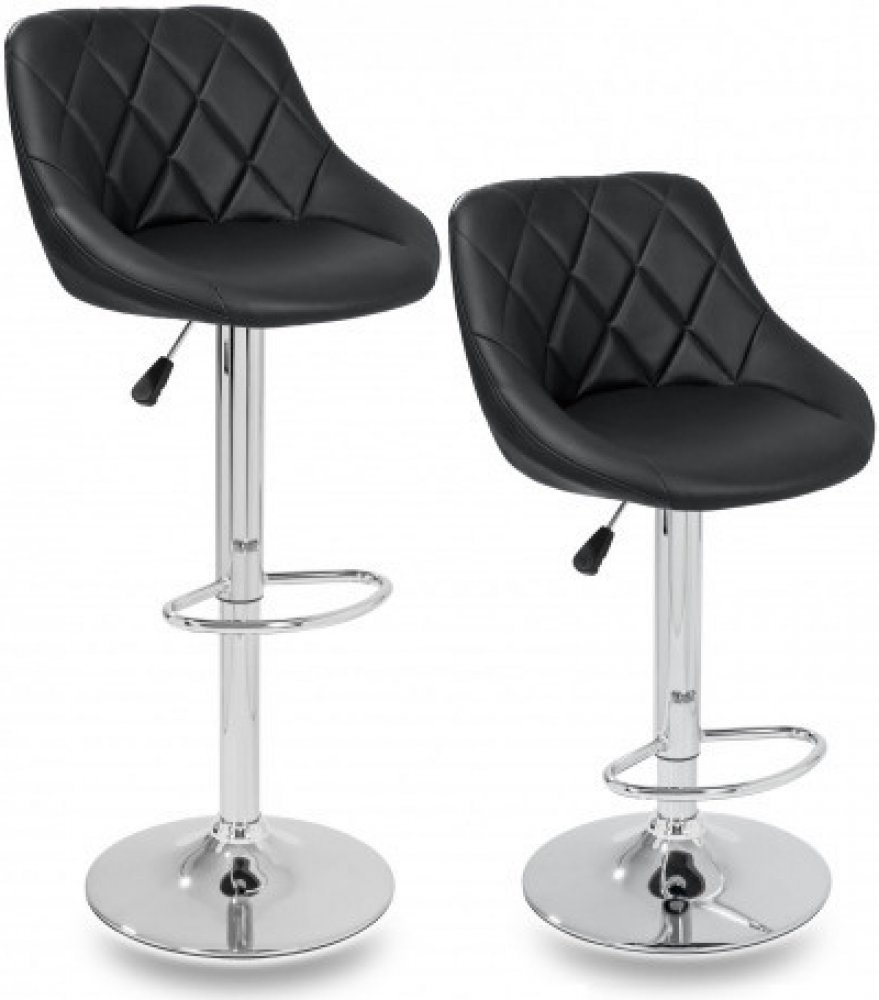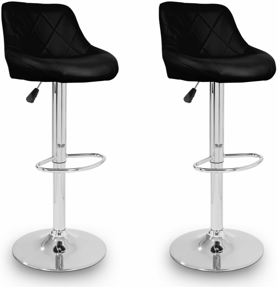 Tato sada dvou černých barových židlí ze syntetické kůže v moderním designu skvěle doplní Váš interiér. Díky mechanismu s plynovým pístem lze nastavit výšku jejich sedáku. Každá židle disponuje chromovou podnožkou, která vám zaručí pohodlné posezení. Opěradlo sedadla je ergonomicky tvarované.