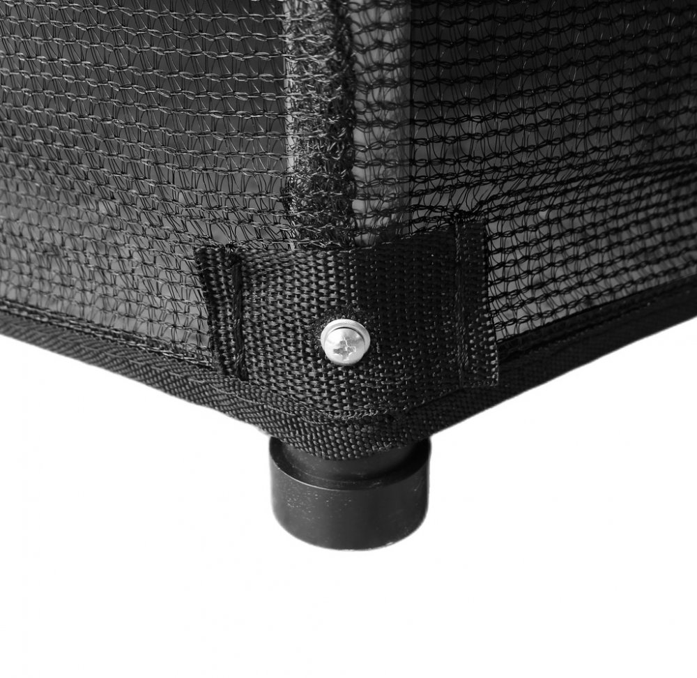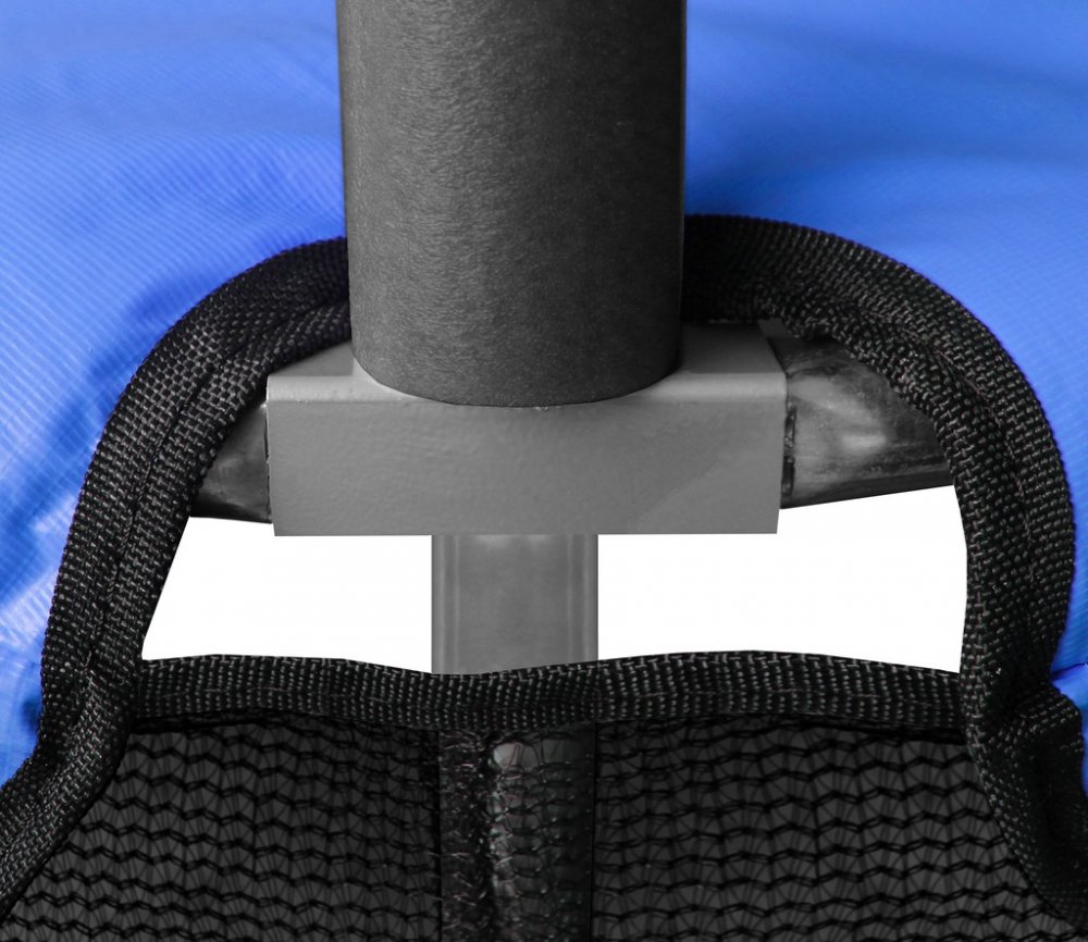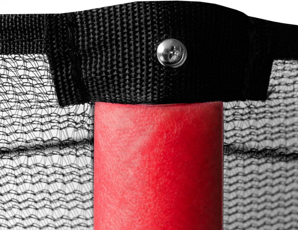 Maximální možnou bezpečnost trampolíny pak zajištuje polstrovaný obvodový pás (kryt pružin), vyrobený z PVC, který překrývá gumičky po celém obvodu trampolíny.