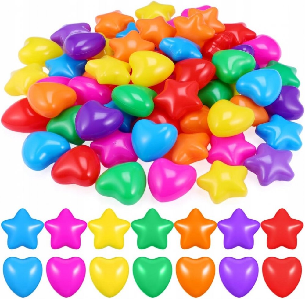 60 ks oceánské míčky – koule ve tvaru hvězdiček a srdcí, plast odolný proti stlačování, pro bazény s míčky pro děti, párty hry, pro hraní uvnitř i venku, různé barvy