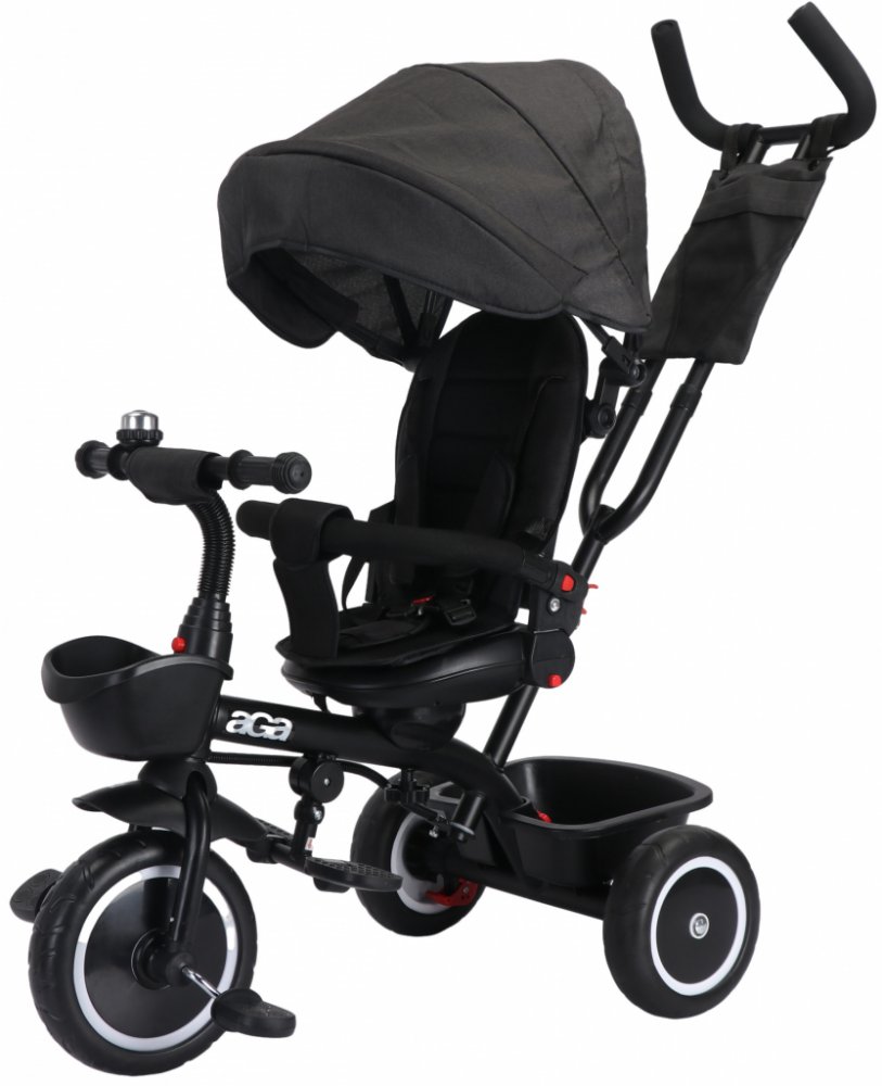 Sedadlo lze otočit o 360° a to ve směru jízdy nebo čelem k rodiči. V zadní a přední části tříkolky je umístěn odkládací košík.