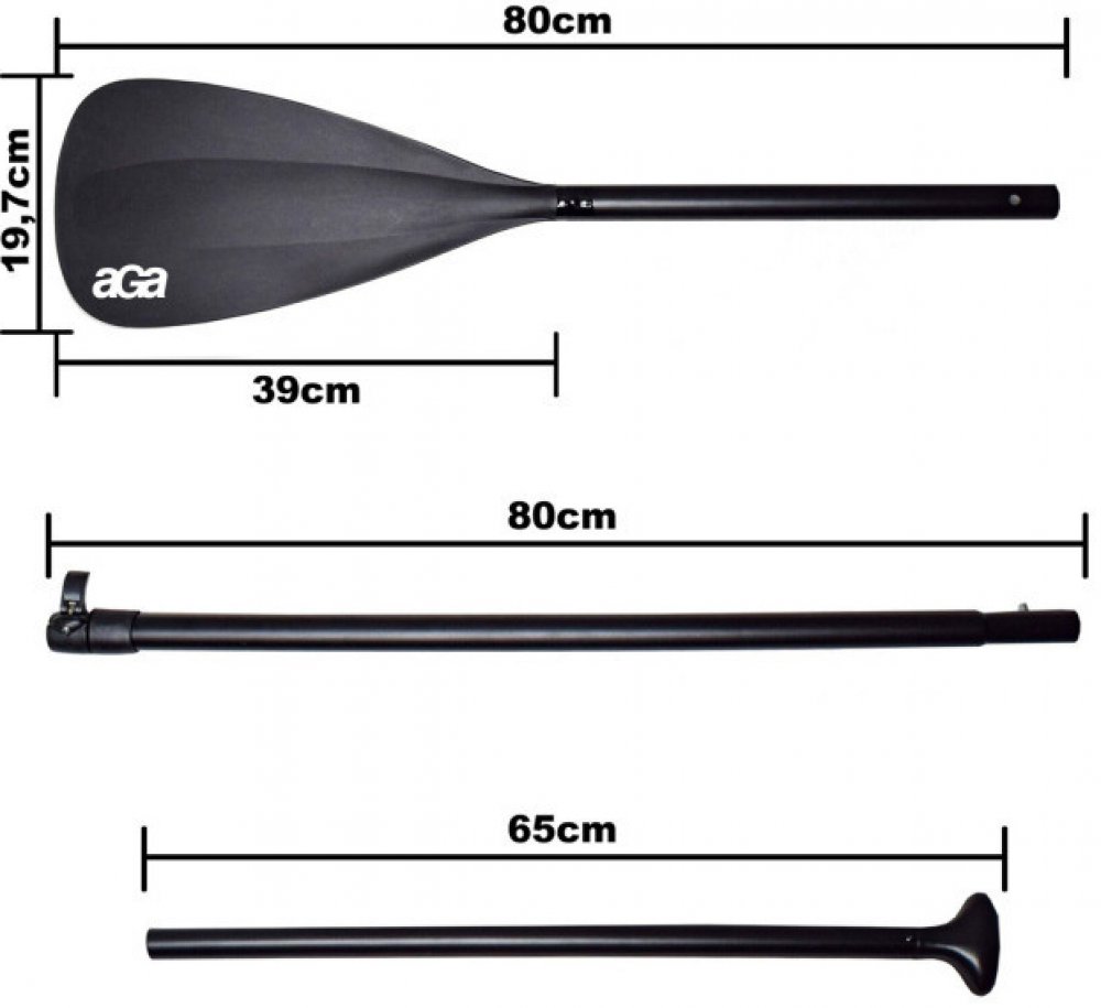 V balení najdete vše, co pro vyražení na vodu můžete potřebovat: trojdílné hliníkové pádlo s nastavitelnou délkou, pumpu s tlakoměrem, bezpečnostní lanko na nohu - leash, ploutev, opravná sada a taška na přenos paddleboardu.
