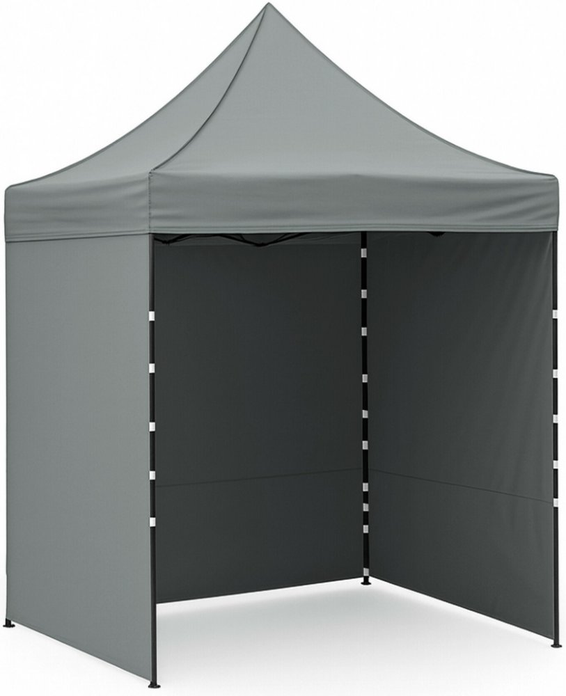 Střecha z 420D PU Oxfordu a bočnice z PVC Oxford 210D poskytují ochranu před větrem i deštěm a zároveň vytvářejí reprezentativní zázemí pro prodejce i zákazníky. Díky praktickému suchému zipu lze bočnice rychle sejmout nebo znovu upevnit.