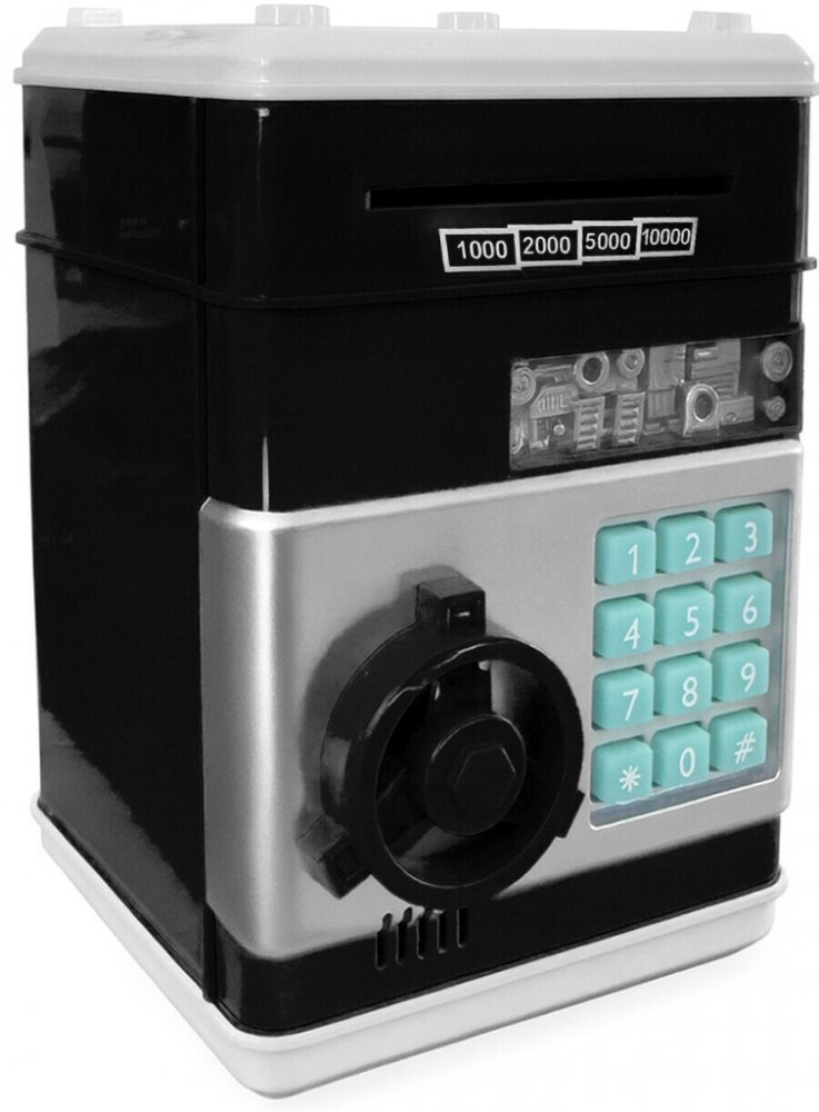 Tato pokladnička není jen obyčejná krabička na peníze. Je to skutečný trezor, který se otevírá po zadání 4místného PIN kódu. Děti si tak mohou nastavit vlastní heslo a chránit své úspory před zvědavými rukama. A co víc, po 20 sekundách vám trezor připomene, že jsou dveře otevřené, takže se nemusíte bát, že by vaše dítě zapomnělo pokladničku zavřít.
