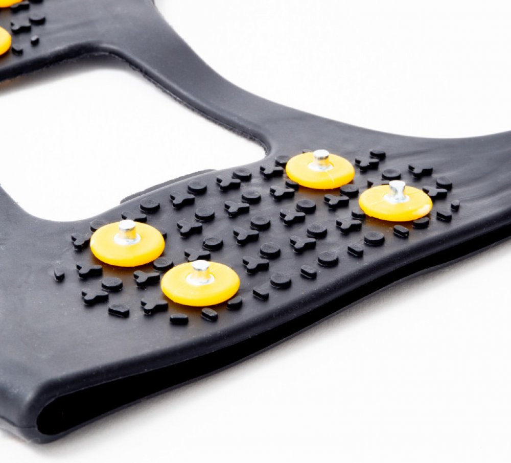 Pryžové výstupky mezi hroty usnadňují i chůzi po tvrdé dlažbě. Použitelné na jakoukoli obuv, včetně botů s podpatky.