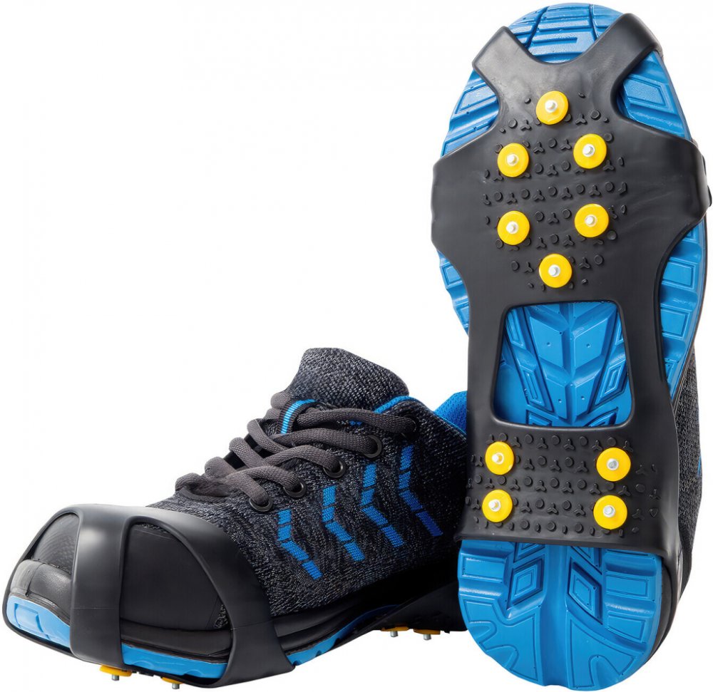 Pryžové výstupky mezi hroty usnadňují i chůzi po tvrdé dlažbě. Použitelné na jakoukoli obuv, včetně botů s podpatky.