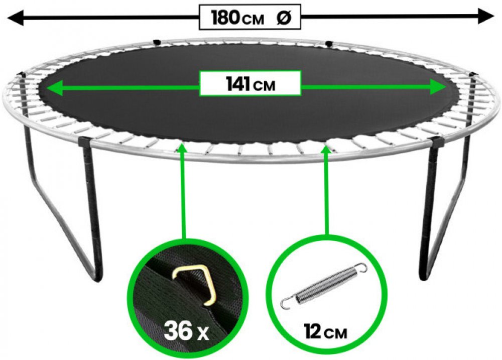 Určeno pro trampolíny o průměru konstrukce: 180-183 cm