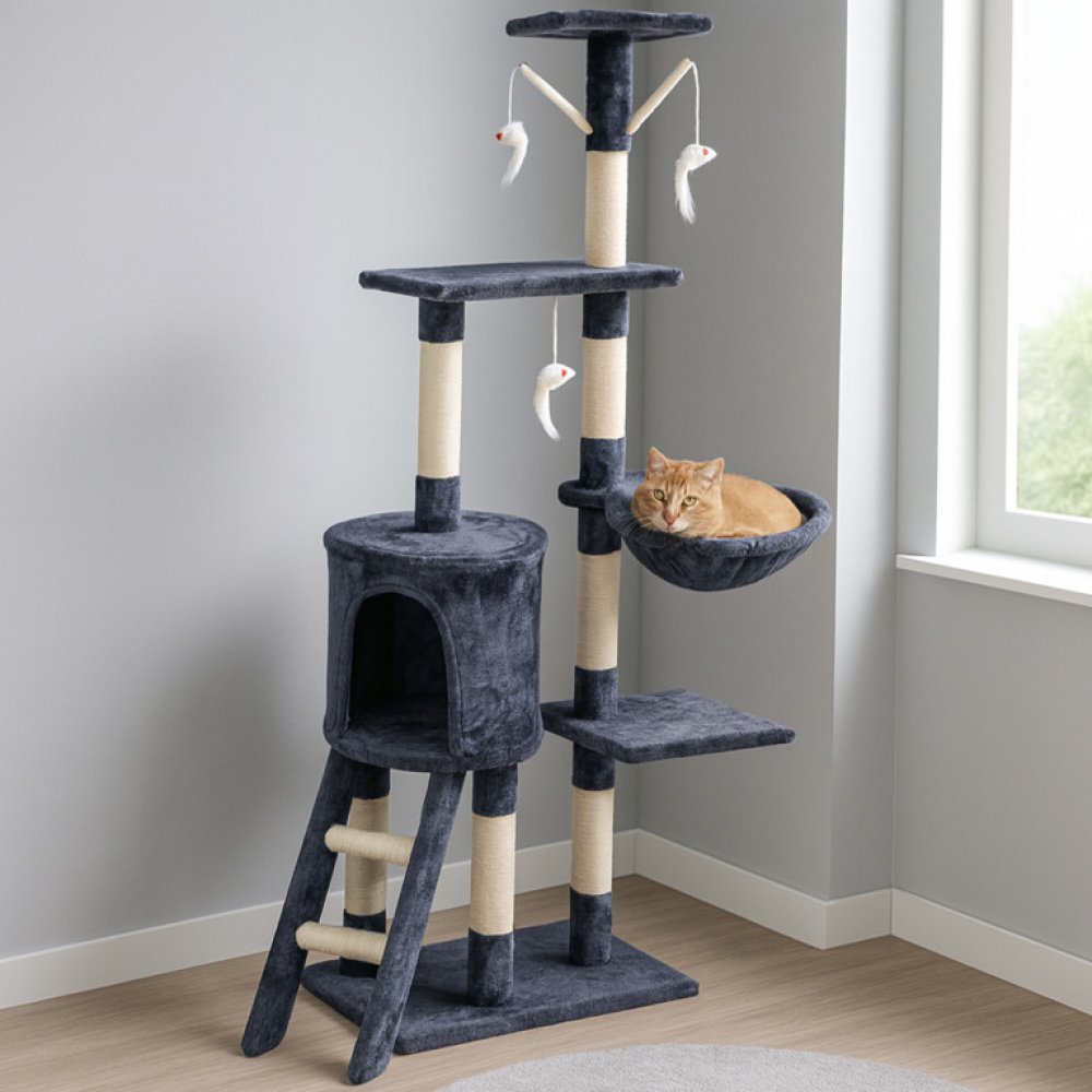 Rádi byste, aby vaše kočička zažívala doma nejvyšší možný komfort? Potom byste měli uvažovat, že koupíte Aga Škrabadlo pro kočky 47 × 35 × 136 cm, tmavě šedé. Škrabadlo Aga je nezbytné, pokud kočka žije v domácnosti, protože jinak vám může poškodit nábytek. Odpočívadlo si zamiluje, protože každá kočka má ráda vyvýšená místa a schovky. Umístit ho lze v podstatě na jakékoliv místo, není ho třeba přidělávat nebo jinak zabezpečovat. Jeho součástí je rovněž: škrabací sloup, budka a pelíšek. Materiálem škrabadla je plyš, sisal a mdf. Díky sisalu si kočka perfektně obrousí své drápky, takže vám nezničí nábytek. Příjemný odpočinek a pohodlí zajistí plyš. Významné funkce škrabadla pro kočky Aga Škrabadlo pro kočky Aga najde uplatnění v každé domácnosti s kočičkami Nemusít ho přidělávat, protože stojí volně Součástí škrabadla je: škrabací sloup, budka a pelíšek Pro výrobu byl použit materiál: plyš, sisal a mdf Celkové rozměry tohoto škrabadla činí 136 × 47 × 35 cm