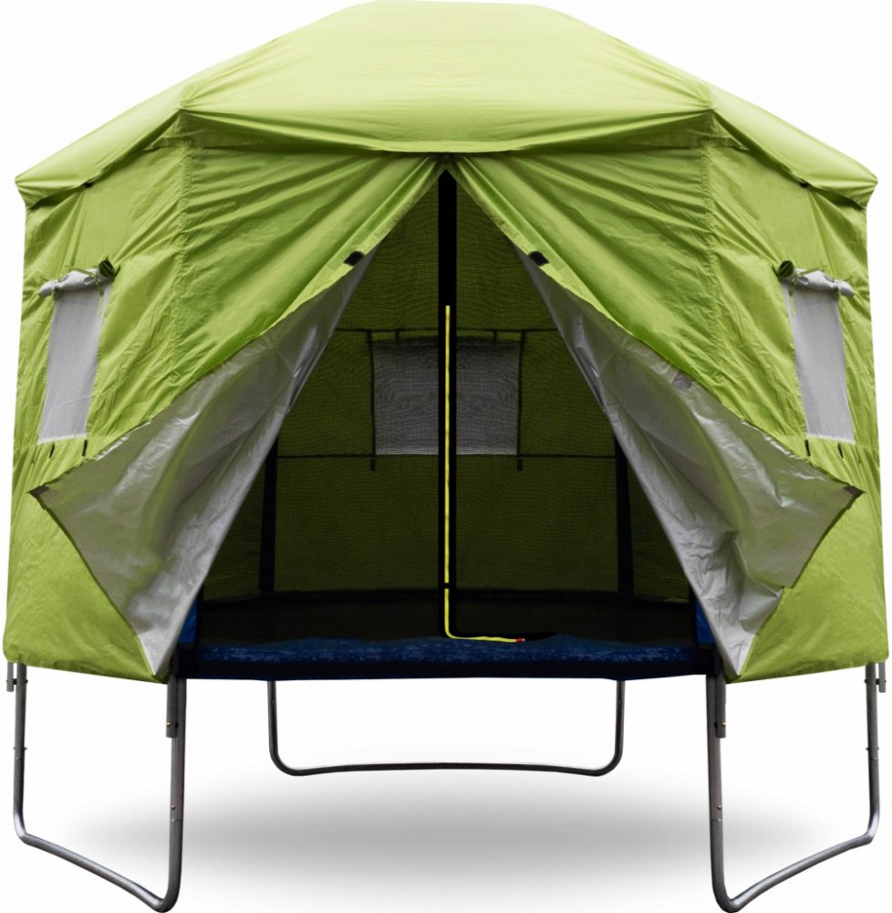 A v době kdy trampolína není aktivně využívána, pomáhá stan chránit odrazovou plochu před znečištěním a UV zářením.