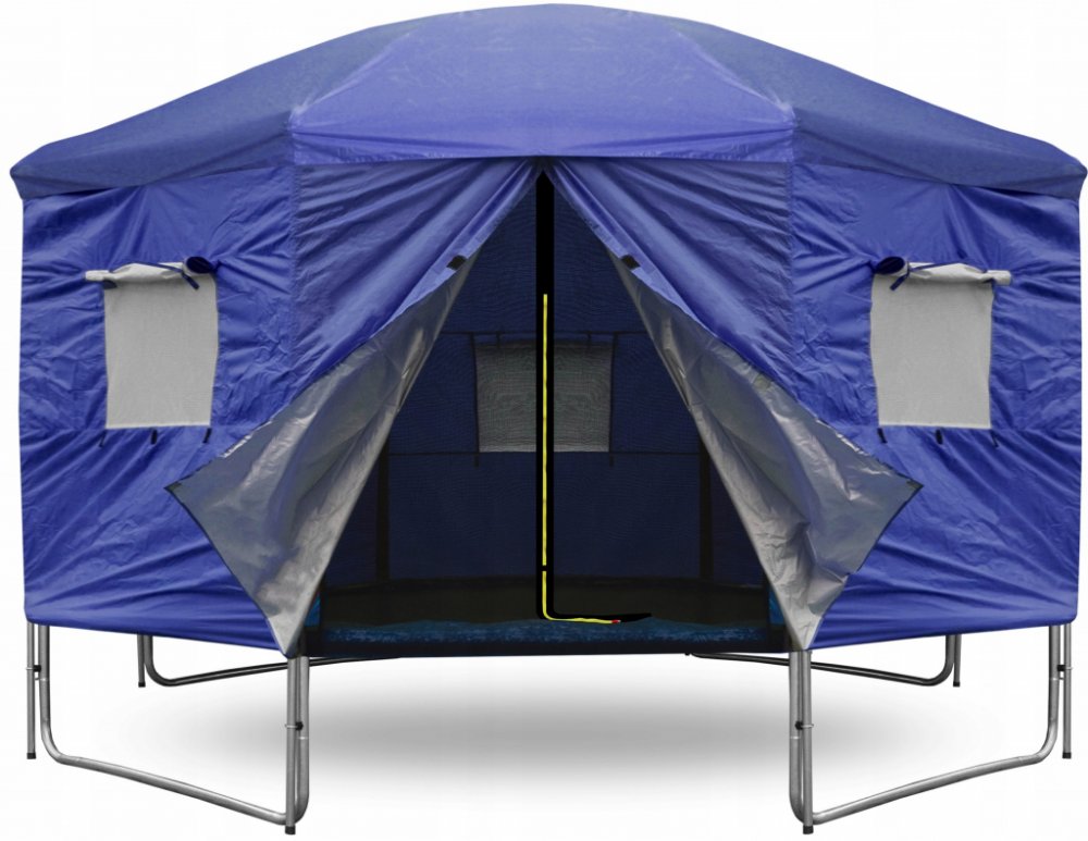 A v době kdy trampolína není aktivně využívána, pomáhá stan chránit odrazovou plochu před znečištěním a UV zářením.