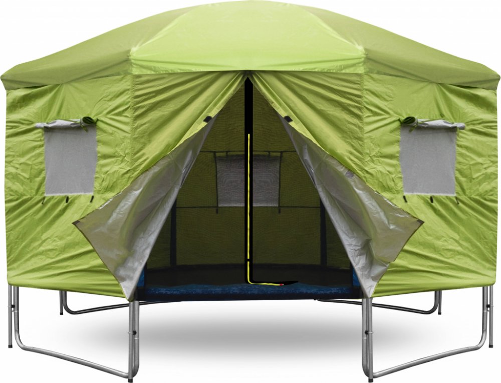 A v době kdy trampolína není aktivně využívána, pomáhá stan chránit odrazovou plochu před znečištěním a UV zářením.