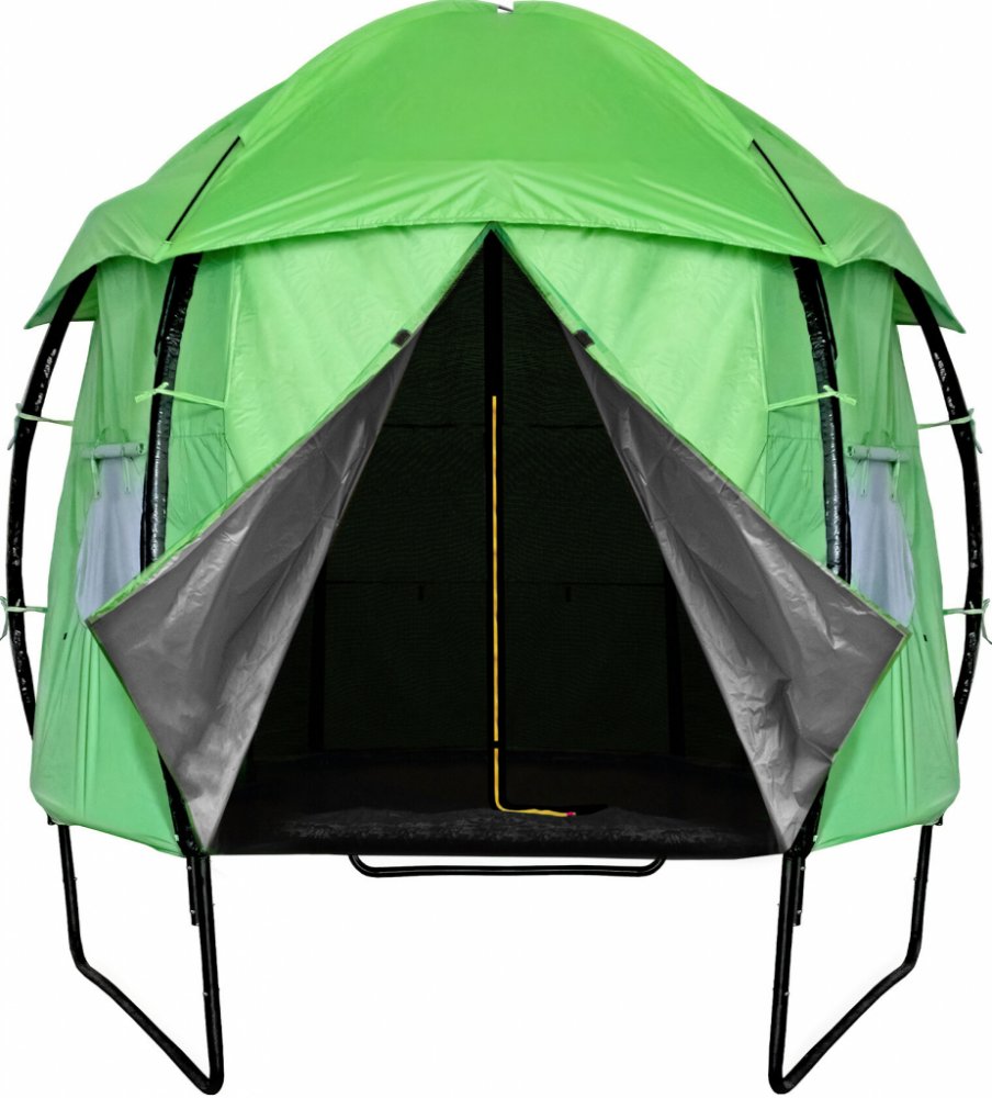 A v době kdy trampolína není aktivně využívána, pomáhá stan chránit odrazovou plochu před znečištěním a UV zářením.