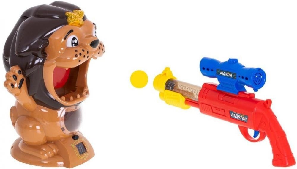Když se lvovi trefíte do středu tlamy, vydá výrazný řev, který je odměnou za krásný zásah!