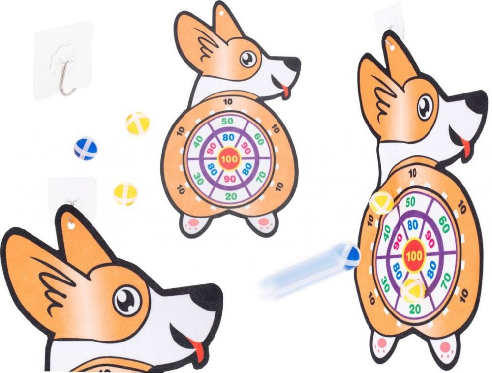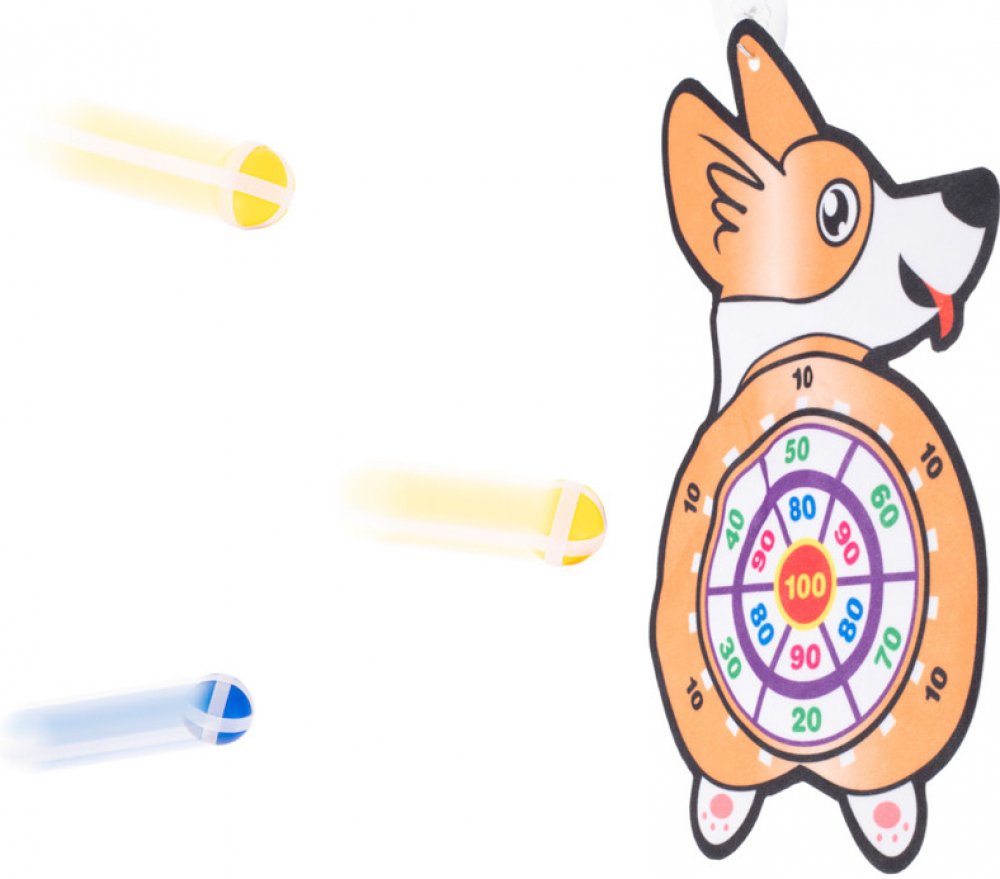 Terč můžete snadno připevnit na zeď nebo jiný rovný povrch pomocí samolepicího závěsu, který je součástí sady.