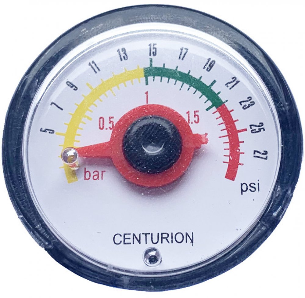 Montuje se přímo na ruční pumpu a měří plnící tlak v rozsahu 0 - 27 PSI ( 1,9 Bar), díky němuž budete vždy vědět, zda paddleboard kánoe a raft je již dostatečně nafouknutý.