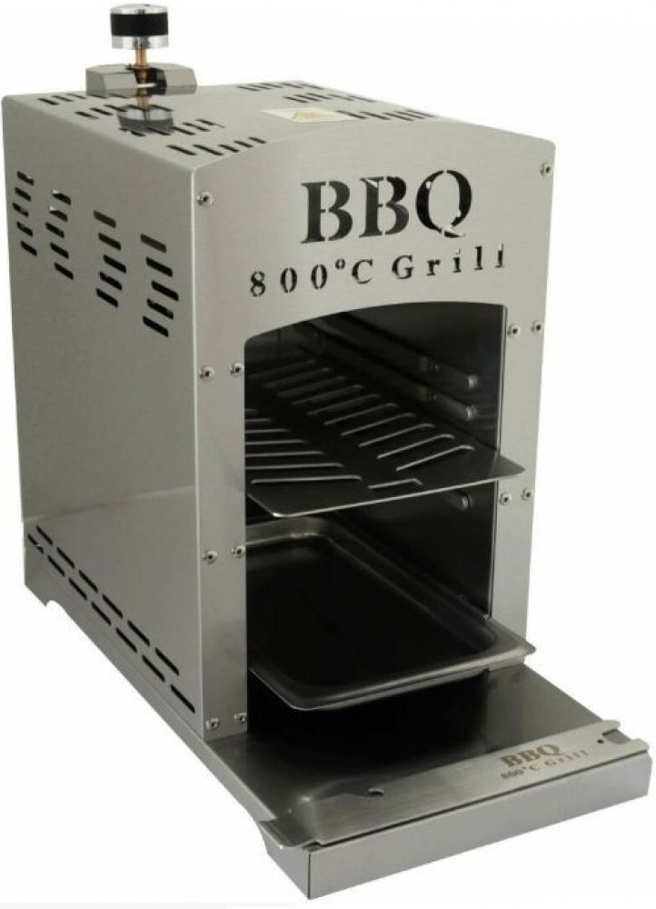 Grilovací sezóna se pomalu ale jistě blíží. S plynovým grilem se grilování stává radostí díky jednoduché obsluze a silnému tepelnému výkonu. Jeho rozměry jsou ideální pro časté přenášení nebo převážení. Pohodlně tak grilujte třeba i na dovolené. Celá konstrukce grilu i samotná grilovací plocha jsou z nerezu zajišťujícího dlouhou životnost. Teplotu uvnitř můžete jednoduše regulovat. V grilu jsou topná keramická tělesa umístěná seshora, díky čemuž budete grilovat zdravě bez přepalování tuků. S příslušenstvím pro grilování, včetně plynové hadice, odtoková vana z nerezové oceli.Vlastnosti a funkce:- horní gril s plynovo-keramickým palivovým článkem- rozsah teplot: max. 800°C - 860°C- integrovaný systém elektrického zapalování- konstrukce zařízení z nerezové oceli- moderní design - flexibilní přívod plynu s regulátorem tlaku plynu pro připojení zařízení k délce plynové láhve 1,20 m