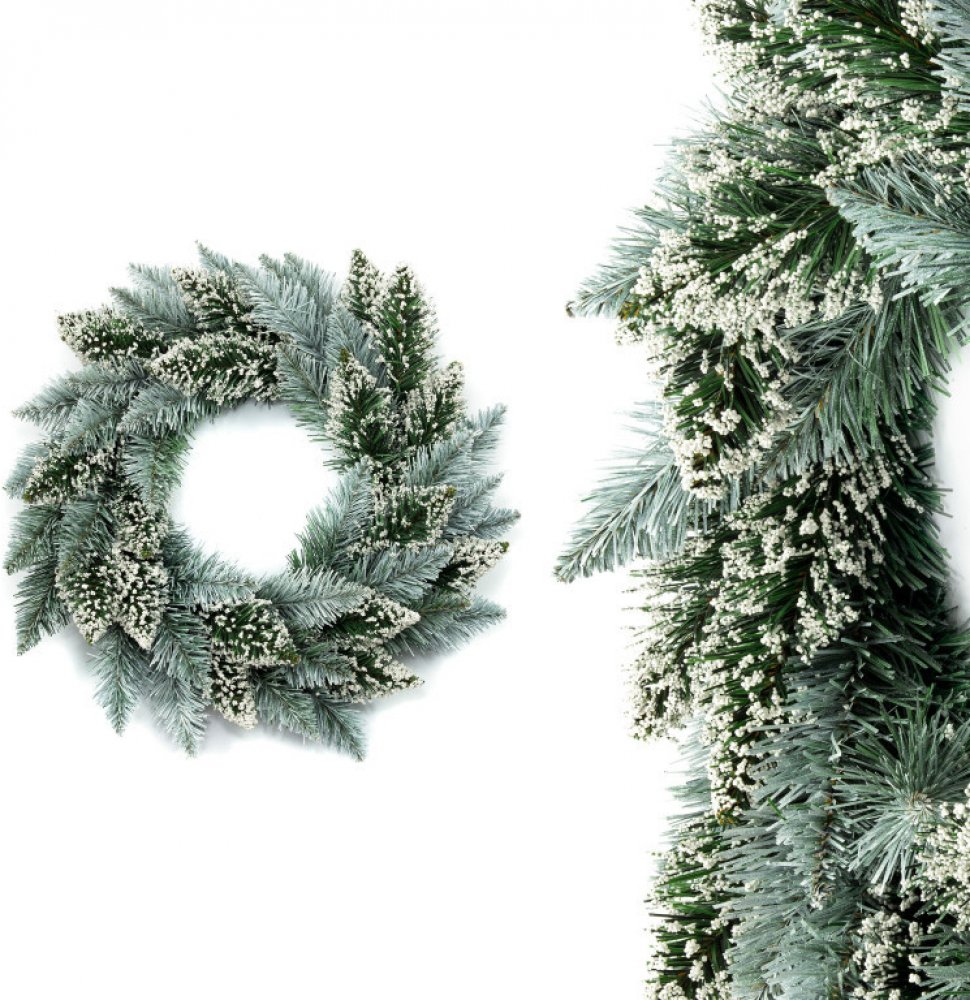 Krásný vánoční věnec zdobený drobnými ozdobami je univerzální a stylovou ozdobou pro vánoční čas.
