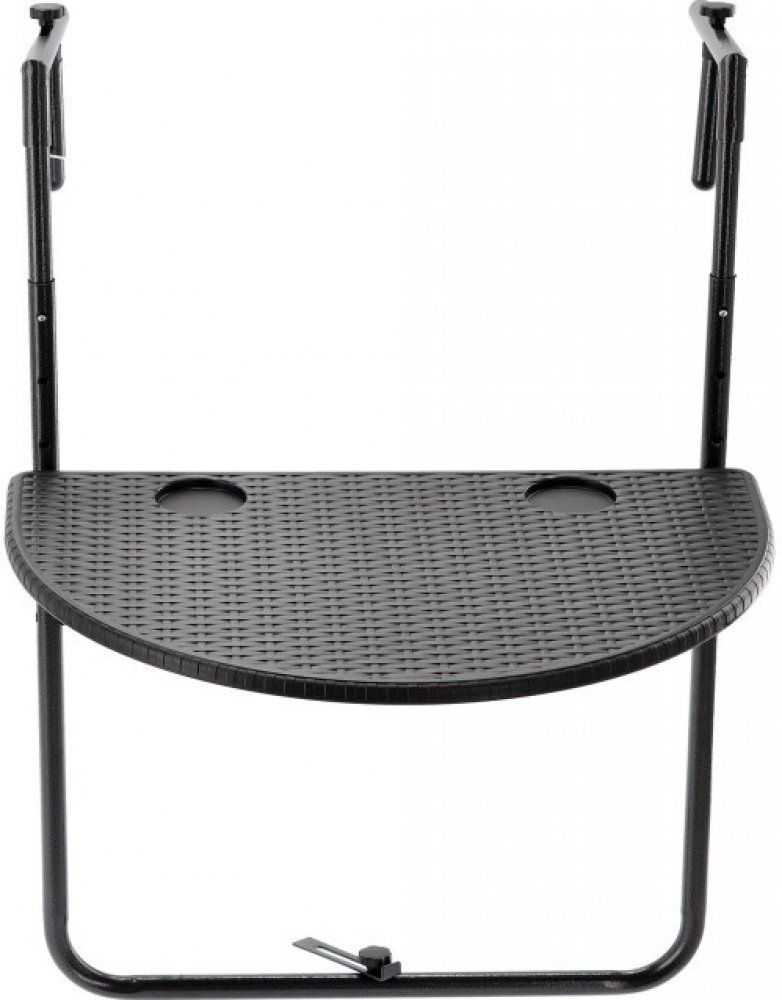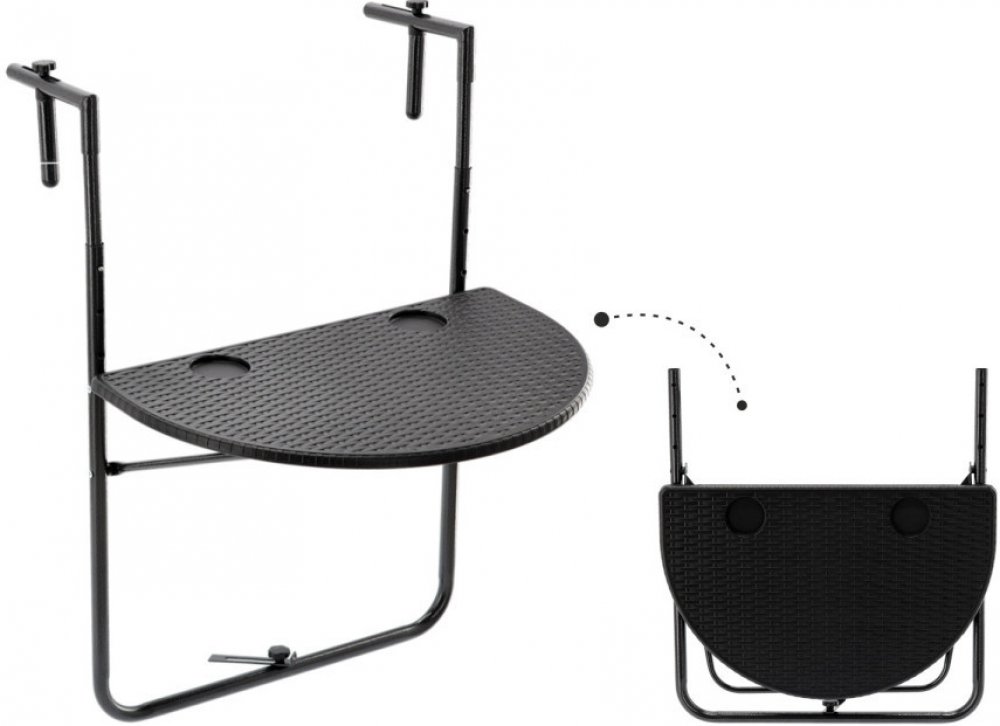Stůl je vyroben z odolného materiálu, který je navržen tak, aby vydržel i náročné podmínky venkovního prostředí. Černá barva dodává stolu elegantní vzhled, který dokonale splyne s okolím vašeho balkonu.