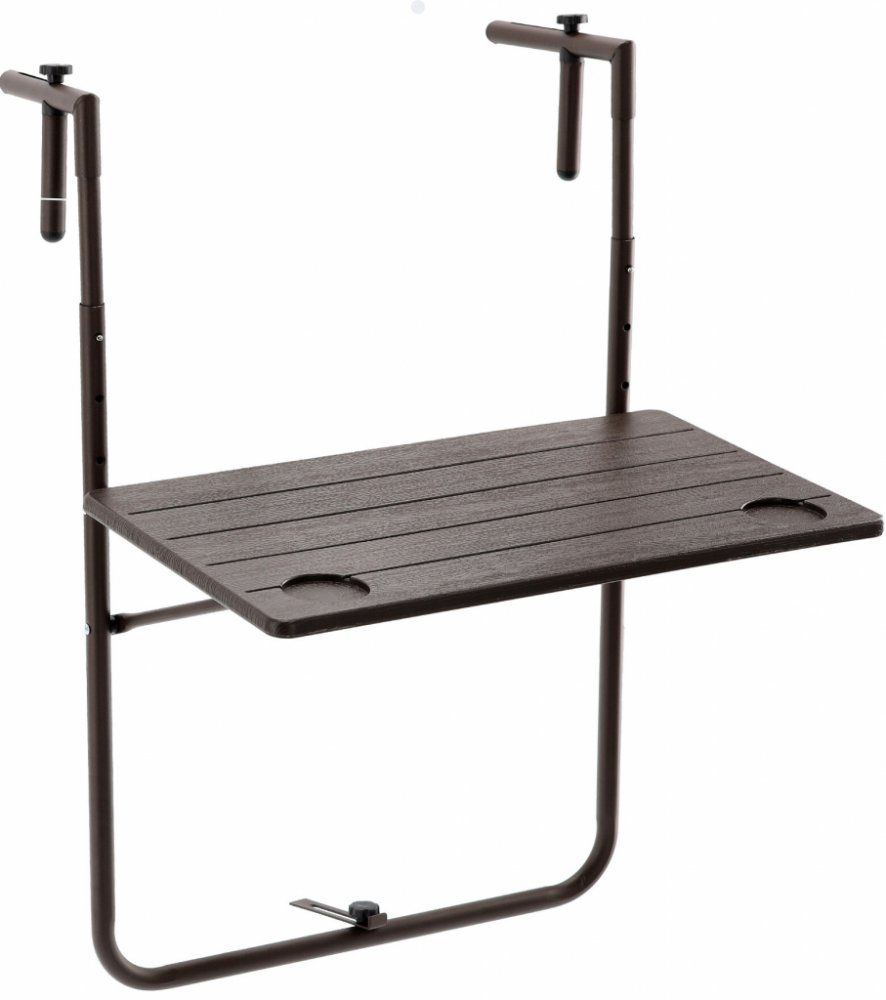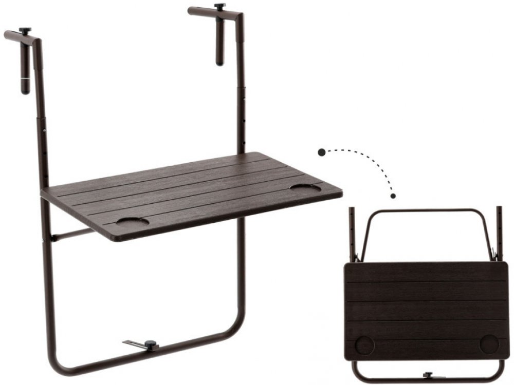 Stůl je vyroben z odolného materiálu, který je navržen tak, aby vydržel i náročné podmínky venkovního prostředí. Hnědá barva, která imituje přírodní dřevo, dodává stolu elegantní vzhled, který dokonale splyne s okolím vašeho balkonu.