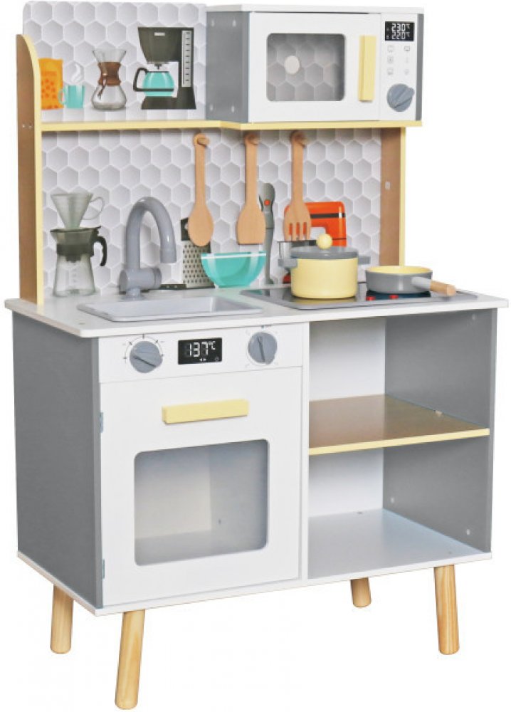 Malé kuchyňky v dnešní době již nejsou pouze výsadou pro holky. Malý šéfkuchař může být i chlapec. Dětská kuchyňka Aga4Kids umožní, aby děti napodobily principy vaření, které vidí u dospělých, aniž by jim hrozilo popálení. Během hraní kluci a holky navíc rozvíjejí svou jemnou motoriku a paměť. Ke zhotovení dětské kuchyňky bylo zvoleno dřevo a plast, takže je odolná a zároveň odlehčená pro případné přenášení. Pokud dojde k jejímu znečištění, nebude problém plastové části utřít vlhkým hadříkem. Hlavní přednosti produktu Aga4Kids dřevěná kuchyňka MR6076 Dětská kuchyňka Aga4Kids je perfektní pro děti, které mají rády vaření Umožní jim se přirozeně rozvíjet K jejímu zhotovení byl použitý kvalitní materiál, jakým je dřevo a plast Disponuje otočnými knoflíky Dvířka se dají otevřít Pro design dětské kuchyňky je typická hnědá a šedá barva Sada 6 doplňků Rozměry dětské kuchyňky Aga4Kids činí 91,5 × 63 × 31 cm (vך×h) Okouzlí děti od 3 let Vlastnosti a rozměry produktu Aga4Kids dřevěná kuchyňka MR6076 Dětská kuchyňka...