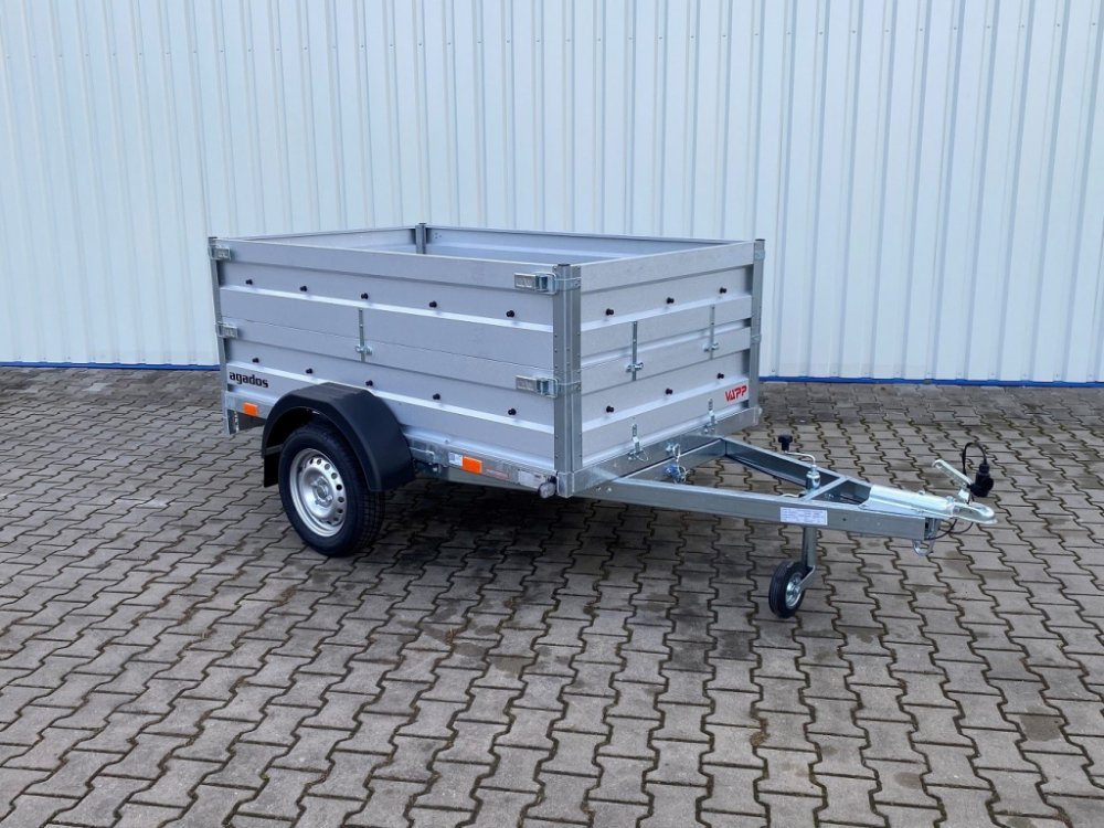Přívěs AGA KIT M1 představuje kompromis mezi cenou a robustním provdením. Jedná se o nebrzděný přívěs s odolným celosvařovaným rámem se čtyřmi příčkami pod podlahou. Podlaha samotná je pak z voděodolné překližky o síle 9 mm. Základní výbava zahrnuje: sklopnou ložnou plochu (jednostranné sklápění směrem vzad, bez heveru) "v"-oj plechové bočnice (aluzinek) o výšce 350 mm kola 13" 13pólová elektroins...
