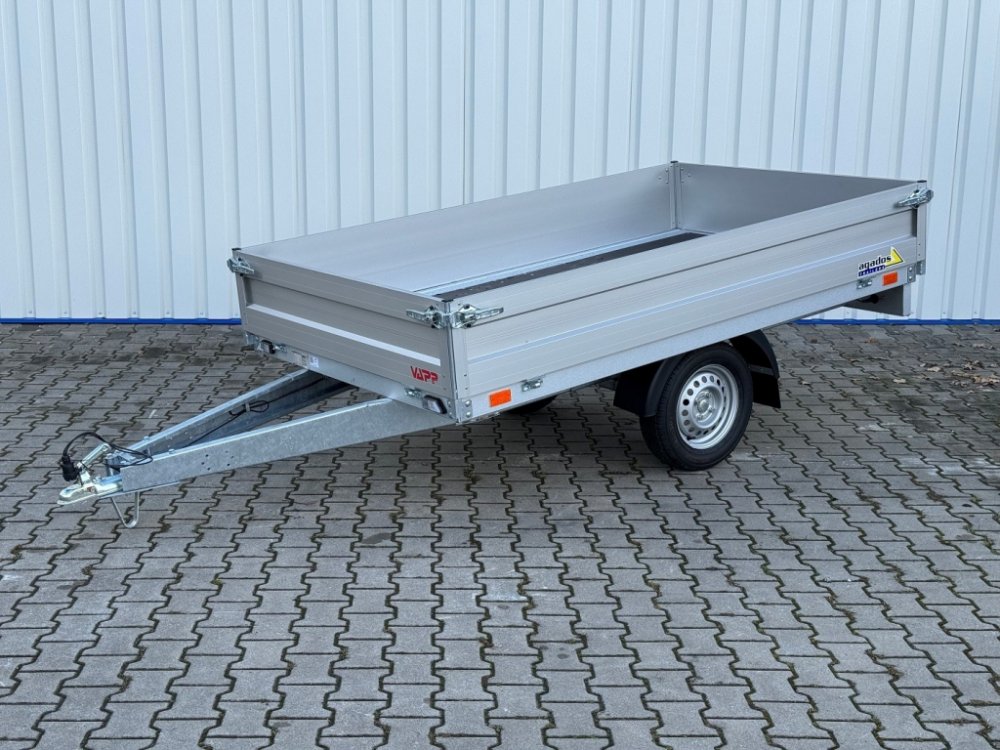 Odolný nebrzděný přívěs se svařovaným rámem s výztuhami pod podlahou a hliníkovými bočnicemi. Ve standardní výbavě je zahrnuto: