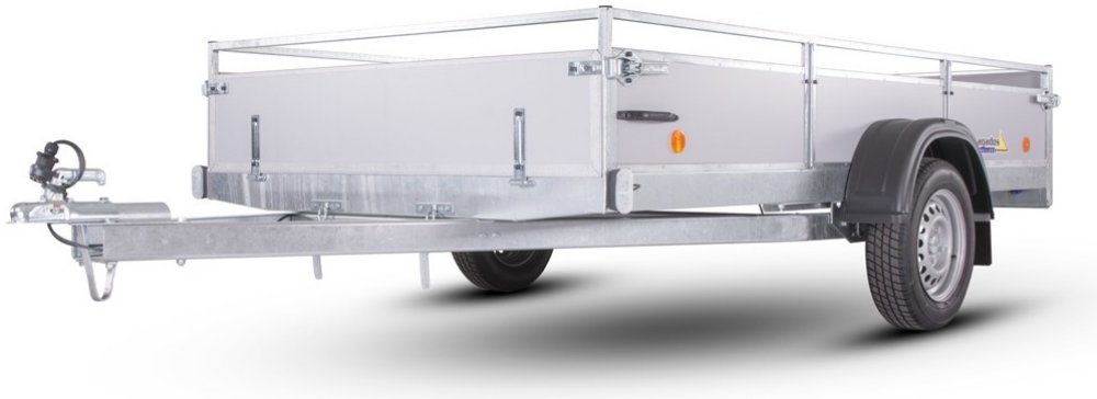 Odolný nebrzděný přívěs se svařovaným rámem s výztuhami pod podlahou a překližkovými bočnicemi. Ve standardní výbavě je zahrnuto: