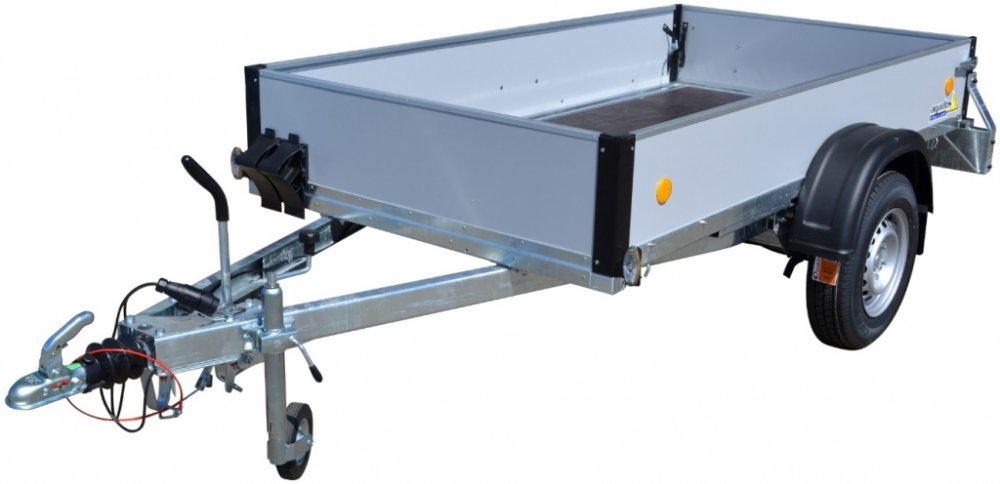 Odolný brzděný přívěs se svařovaným rámem s výztuhami pod podlahou a překližkovými bočnicemi. Ve standardní výbavě je zahrnuto: