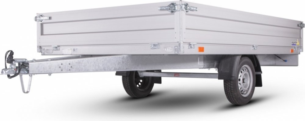 Odolný nebrzděný přívěs se svařovaným rámem s výztuhami pod podlahou a hliníkovými bočnicemi. Ve standardní výbavě je zahrnuto: