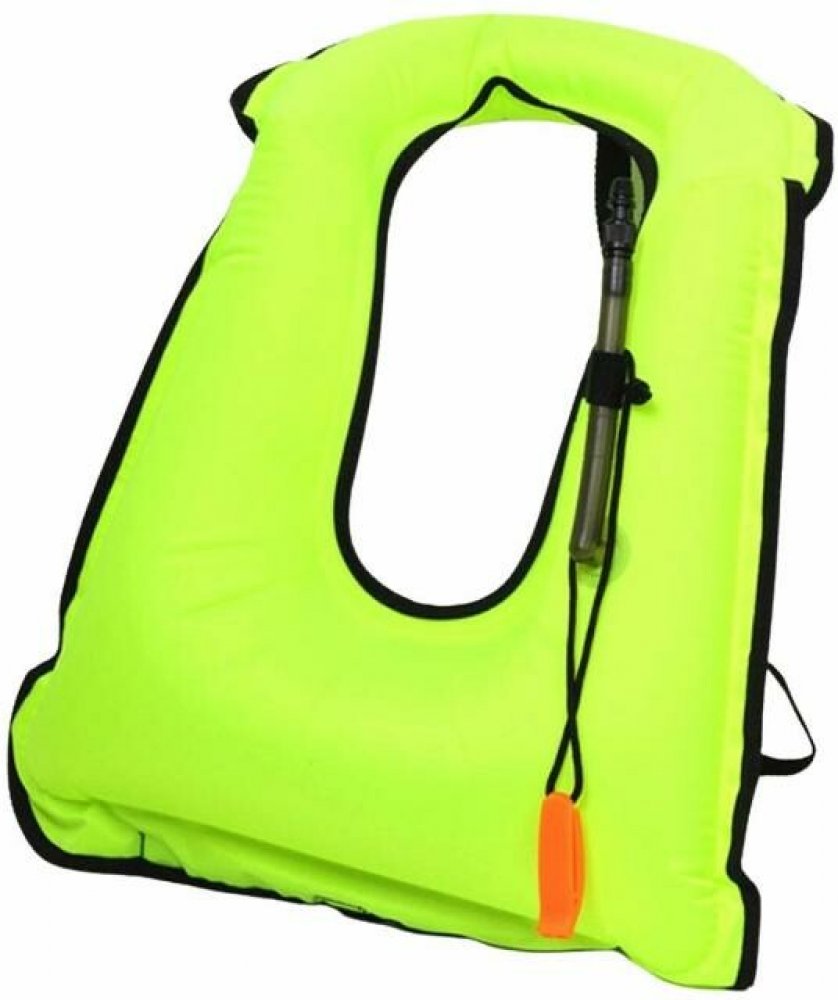 Díky výrazné oranžové barvě nafukovací šnorchlovací vesty dělá šnorchlaře jasně viditelným bodem na hladině.