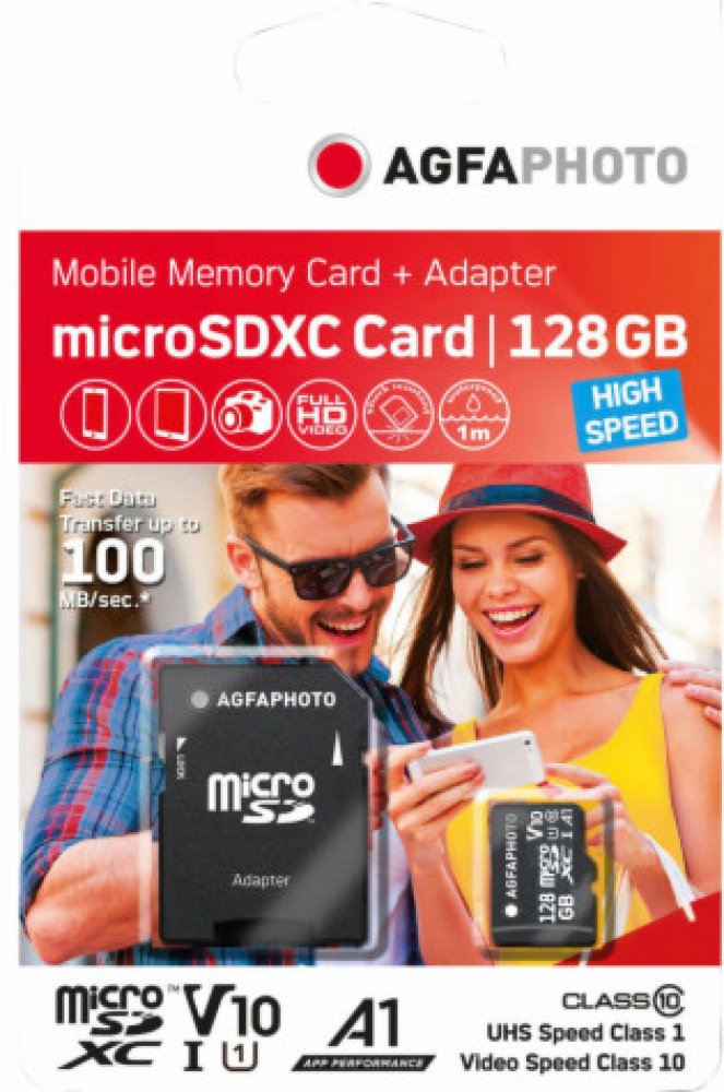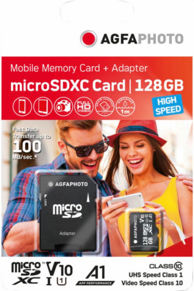 Kombinací vysokého výkonu a vysoké kapacity jsou paměťové karty AgfaPhoto MicroSDXC Class 10 ideální volbou pro telefony, smartphony, tablety, ale i kompaktní, středně pokročilé a pokročilé fotoaparáty a kamery, pozorovací kamery.