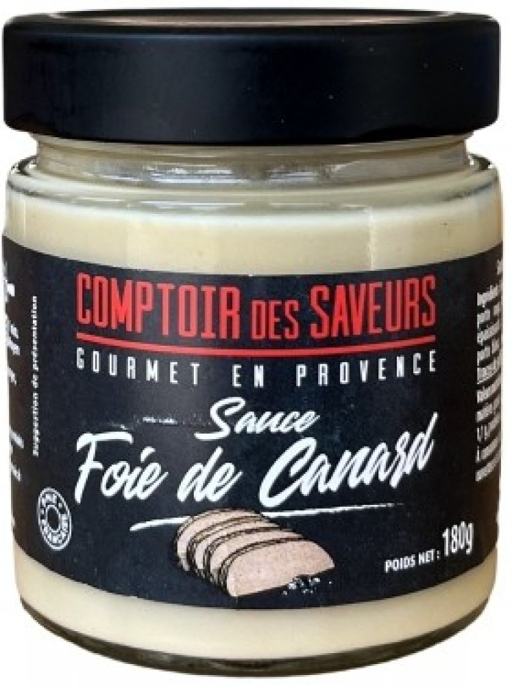 Voda, marinovaná kachní játra 29 % (voda, kachní foie gras, červené portské, koňak, sůl, bílý pepř), SMETANA 18 % (MLÉKO), šalotka, zahušťovadla: modifikované škroby a xantanová guma, bílé portské, sůl, bílý pepř .