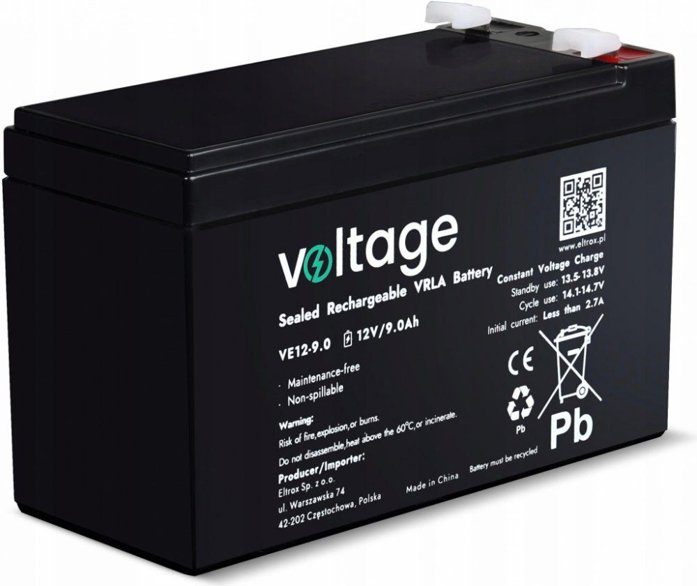 Vzduchotěsné bezúdržbové baterie Voltage řady VE, s projektovanou životností 5 let, jsou vyrobeny technologií AGM (Absorbed Glass Mat), ve které je elektrolyt absorbován do separátorů ze skleněných vláken se zvýšenou pórovitostí, které se nacházejí mezi deskami. Tím bylo eliminováno nebezpečí úniku a umožněn provoz zařízení v jakékoli poloze. Baterie mají samotěsnící tlakové ventily (VRLA), které zabraňují vzniku příliš vysokého pro tlakové články a chrání tak pouzdro před poškozením.