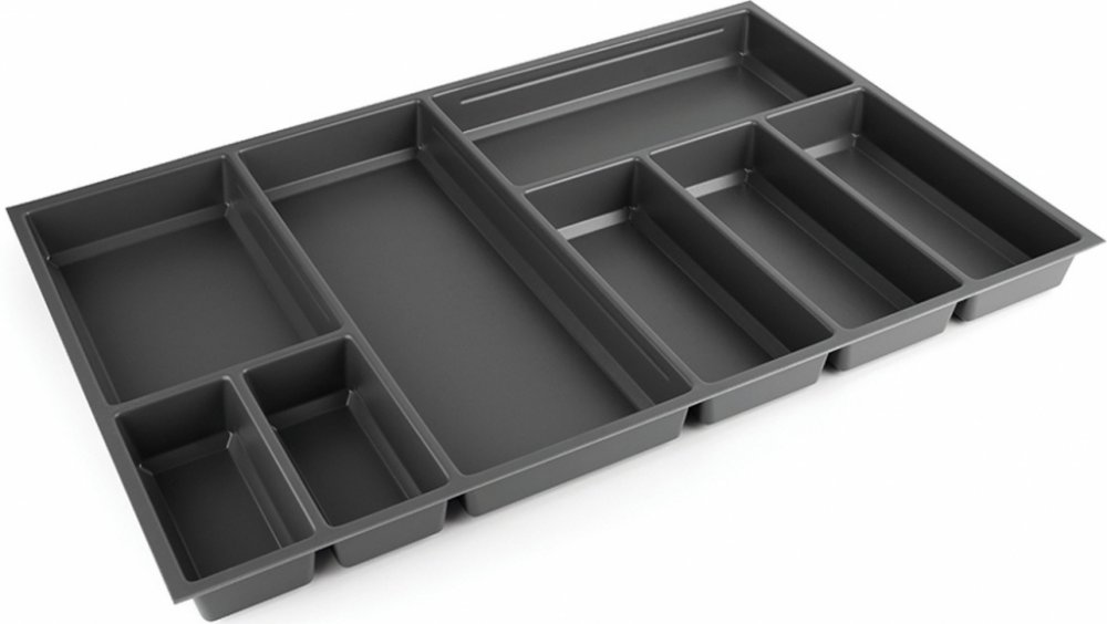 Příborník Sky 80 pro přehledné uspořádání příborů a kuchyňského náčiní. Kombinace pevných přihrádek a pohyblivých přepážek (k dokoupení zvlášť). Pro různé typy zásuvkových systémů - StrongMax, Legrabox, nebo i jiné typy (rozměry možno přizpůsobit ořezáním).Příborníky jsou rozměrem připraveny pro zásuvky s tenkými bočnicemi (StrongMax, Blum Legrabox). V rozměrech od 40 do 1200 mm šířy skříňky. Lze je vzájemně kombinovat a spojovat (možno dokoupit spojovací profil). K bočnici přilehnou přesně díky ukončovacímu profilu. Je tu i možnost doplnit o držák nožů, řezačku folii a také o další posuvné přepážky pro personalizaci podle přání zákazníka.