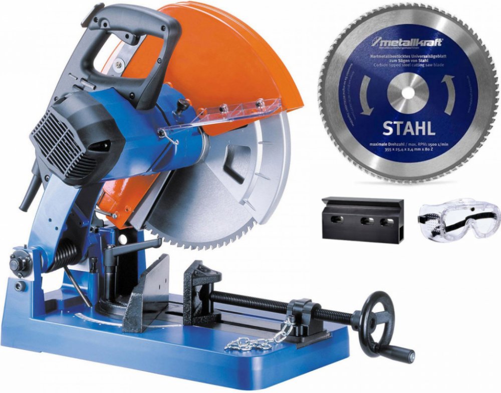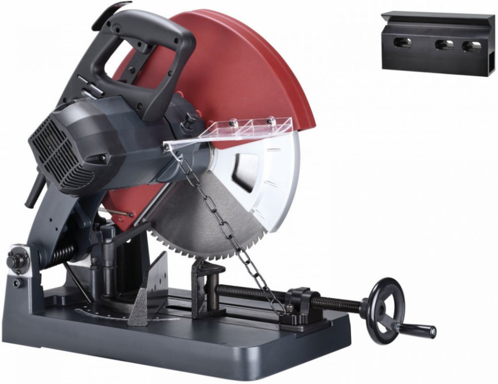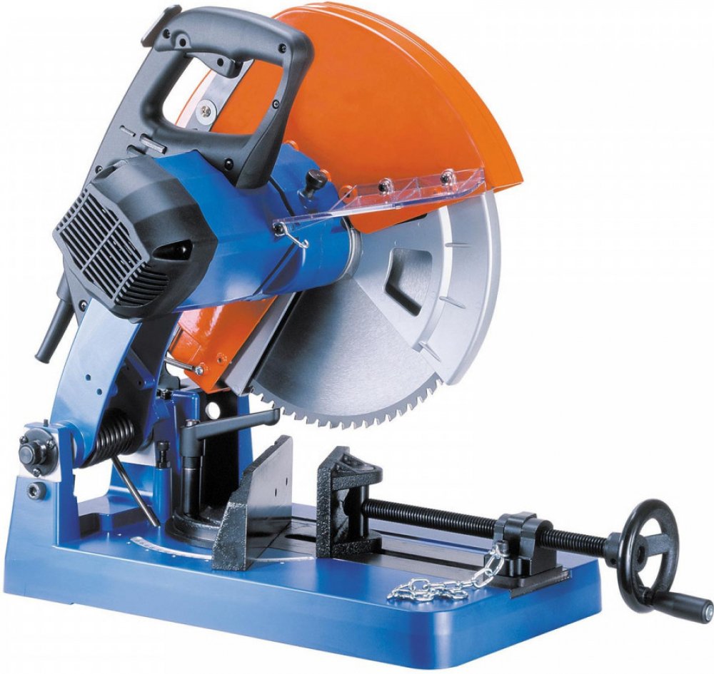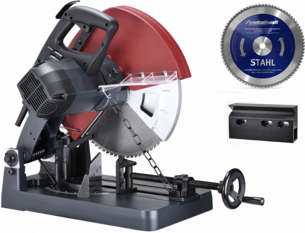 Tato stolní kotoučová pila má mechanickou pojistku proti nežádoucí manipulaci a snadno přestavitelný uzamykatelný svěrák s možností řezat pod úhlem. Pro řezání profilů v prizmě (45°) můžete použít "prizmatickou čelist" (jako volitelné příslušenství) díky které se až 5x prodlouží životnost kotouče. Samozřejmostí je možnost nastavení hloubky řezu. Kolík pro aretaci vřetene usnadní výměnu kotouče.