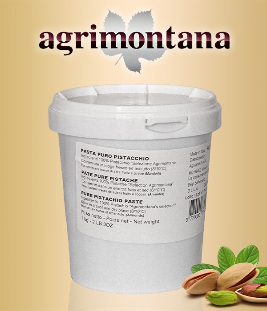 pod![CDATA[Výběrová ochucovací pistáciová pasta od Agrimontany, ideální pro výrobu zmrzlin, dezertů a náplní. Pasta je vyrobena drcením a šetrným válcováním výběrových loupaných pistácií. Agrimontana vyrábí pouze 100% přírodní a profesionální produkty, proto tento výrobek neobsahuje žádná přidaná barviva a aromata.