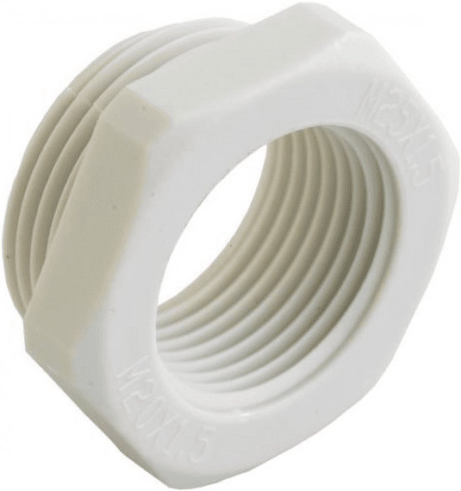 Závitová redukce M40 x 1,5 / M25 x 1,5, plastová, světle šedá, šestihranná, délka závitu 10 mm