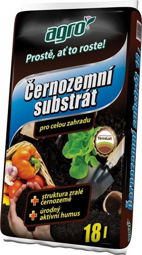 AGRO Černozemní substrát na celou zahradu je vyroben ze silně rozložené, tmavé humózní rašeliny a vyzrálého kompostu. Má upravenou reakci a je obohacený o živiny. Vyznačuje se jemnou strukturou silně rozložené rašeliny a tmavou barvou, připomínající organický podíl černozemních půd. Zásobuje rostliny všemi důležitými živinami včetně mikroprvků. Díky vysokému stupni rozkladu má rašelina tmavou barvu, na dotek je kyprá, vláčná a zemitá. Další složkou substrátu je vyzrálý kompost. Slouží nejen jako zdroj přírodních živin, ale především zajišťuje černozemnímu substrátu vzdušnost nezbytnou pro správný růst kořenů a vyrovnané hospodaření s vodou. Zásobu přírodních živin v kompostu ještě posilujeme dodáním startovacích živin s mikroživinami pro úspěšný vývoj osázených rostlin. Černozemní substráty AGRO nahrazují vzácnou tradiční úrodnou černozem, známou z oblastí českého Polabí či slovenské Podunajské oblasti. Na záhonech tak pomáhají obnovit přirozené složení kvalitní půdy a posilují její organickou složku. V pěstitelských nádobách tento humózní substrát zcela nahrazuje kvalitní černozemní půdy. Výhody Vhodný na všechny druhy zeleniny, ovoce a květin (s výjimkou kyselomilných) pěstované v nádobách na terase či balkonech nebo volně na záhonech v zahradě Ocení ho zejména ti zahrádkáři, kteří nedají dopustit na bohaté úrodné půdy a zároveň chtějí kvalitní základ pro pěstování bez nežádoucích plevelů a škůdců Optimální složení: černá rašelina, kvalitní vyzrálý humus, upravené pH, startovací živiny s mikroprvky na první 4 týdny - organický extrakt TerraLut Rozsah a způsob použití Substrát se používá k pěstování rostlin v zahradě, na záhonech, ve sklenících, či zimních zahradách, atď. Substrát lze používat k pěstování téměř všech druhů rostlin (okrasných rostlin, ovocných druhů a zeleniny). Substrát není vhodný pro kyselomilné rostliny (azalky, rododendrony, borůvky apod.). Substrát lze použít na záhony i do pěstitelských nádob. Zasaďte rostliny, substrát kolem rostlin lehce přitlačte ke kořenům a vydatně polijte. Pravidelně zalévejte a po 3 - 4 týdnech začněte s přihnojováním kombinovaným hnojivem. Chemické a fyzikální vlastnosti Vlastnost hodnotaHodnota pH (vodní výluh) 5,0 - 6,5 Obsah spalitelných látek min. 60,0 % Elektrická vodivost (ve vodním výluhu 1v:5v) v mS.cm-1 0,2 - 0,65 Obsah rizikových látek Obsah rizikových prvků nepřekračuje zákonem stanovené limity platné v ČR. Podmínky skladování Výrobek je nutno skladovat na suchých místech v neporušených obalech. Uchovávejte mimo dosah dětí. Pokyny pro bezpečnost a ochranu zdraví při práci Je třeba zachovávat běžné zásady osobní hygieny a bezpečnosti při práci. Používejte ochranné rukavice. Po skončení prací si vždy důkladně umyjte ruce vodou a mýdlem. První pomoc Po zasažení očí si je vymyjte proudem čisté vody. Při náhodném požití si vypláchněte ústa, vypijte asi 0,5 l vody. Ve vážnějších případech, zejména při alergických reakcích vyhledejte lékařskou pomoc. Dostupné balení: 18 l, 60 l