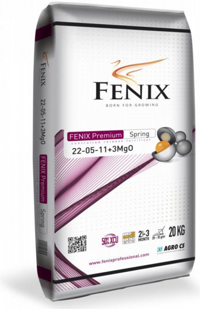 FENIX Premium Spring je vysoce kvalitní hnojivo určené pro profesionální péči o trávníky. Obsahuje 50 % dusíku ve formě XCU, což je inovativní typ pomalu uvolňující močoviny s dvouvrstvým obalem z polymeru a elementární síry (PCSCU). Tento obal zajišťuje dlouhodobý účinek, nižší riziko spálení trávníku a vyšší mechanickou odolnost granulí.