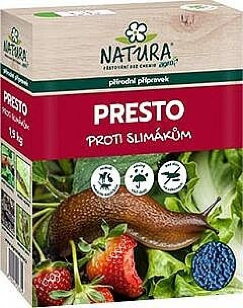 Bojujete na zahradě se slimáky a plzáky? Pořiďte si přípravek NATURA Presto od značky Agro. Je určený pro venkovní záhony, skleníky i pařeniště. Má vysokou účinnost a unikátní složení, které snižuje nutnou dávku návnady. Přírodní účinná látka (fosforečnan železitý) ovlivňuje metabolismus škůdců, způsobuje u nich pocity sytosti, a tím snižuje jejich žravost. Slimáci se přestanou pohybovat po zahrad...