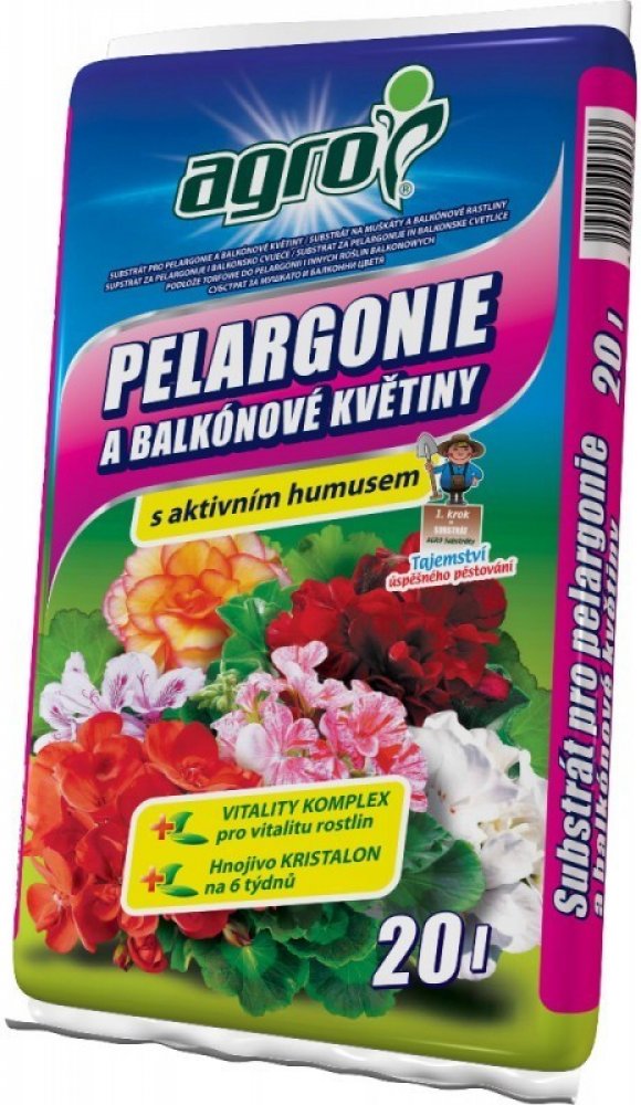 AGRO Substrát pro muškáty a jiné balkónové květiny je speciálně vyvinut pro potřeby pěstování balkónových rostlin, které potřebují k růstu a bohatému kvetení vysokou dávku živin.